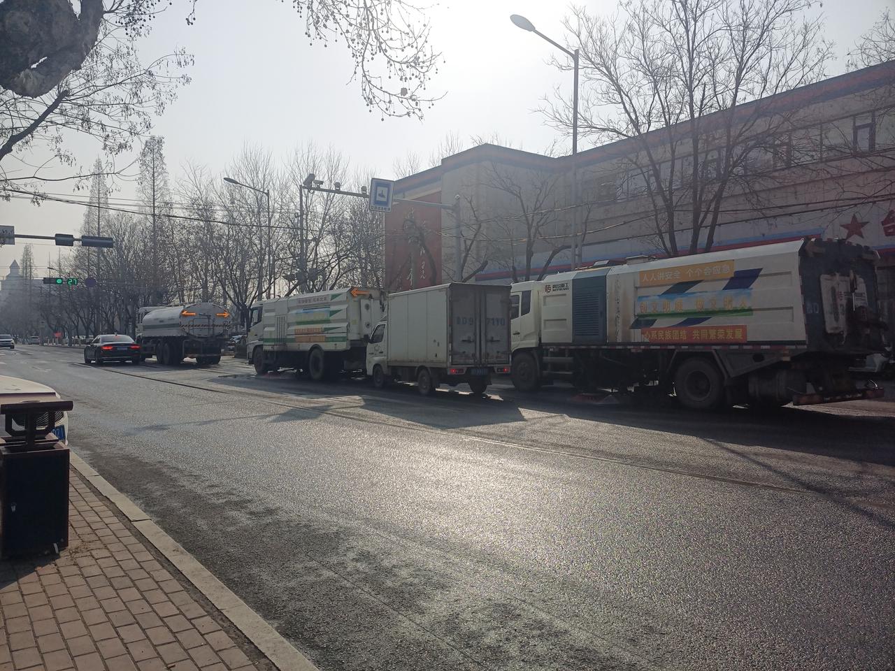 春节将至,三台环卫车同行各司其职清扫道路,致敬道路美容师——环卫工人!(图片来源:老山兰随手拍)