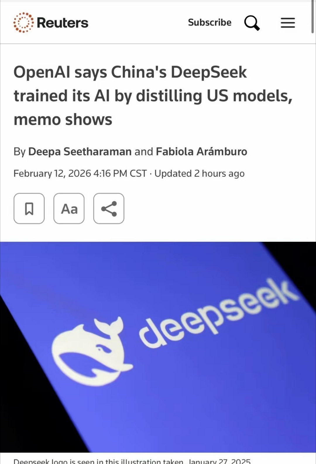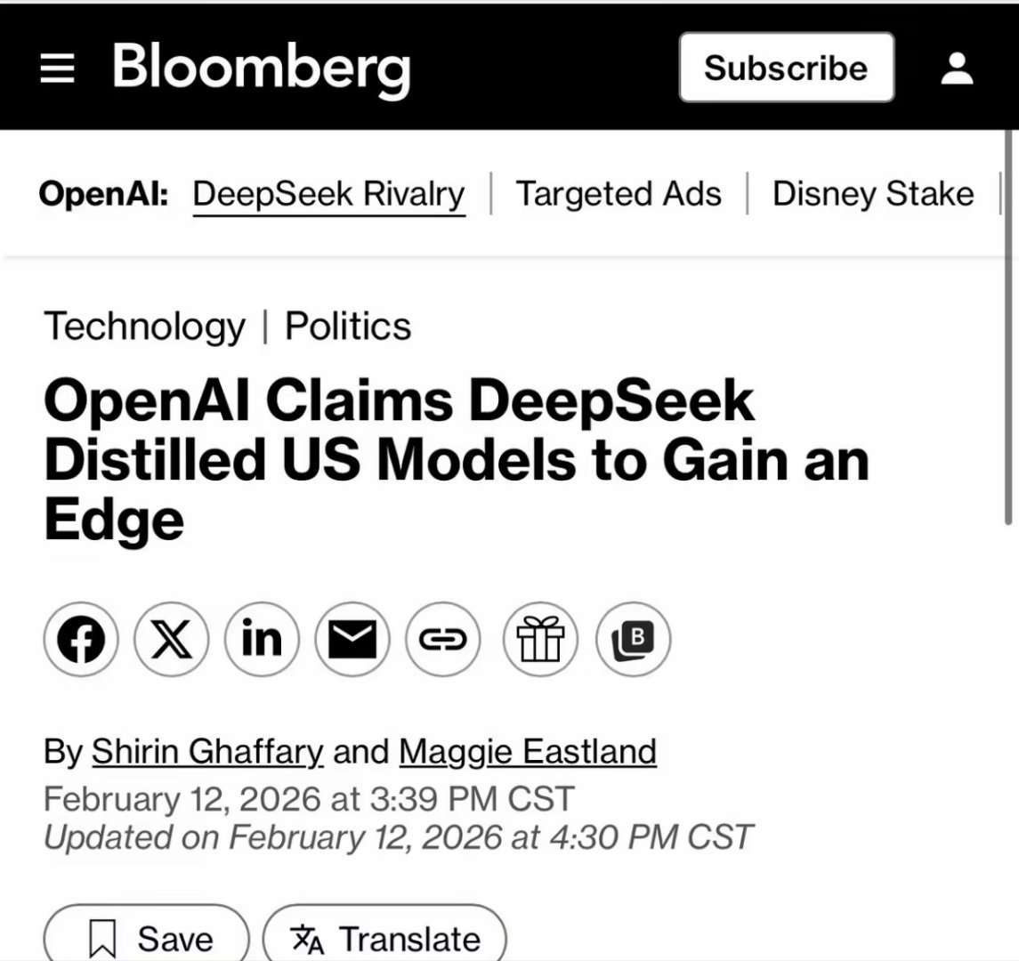 OpenAI 已向美国国会“美中战略竞争特别委员会”提交备忘录,指控中国人工智能公司 DeepSeek 通过“知识蒸馏(distillation)”方式,从美国领先的大模型输出中提取结果,用于训练自身模型,并称相关做法“既不公平且日益复杂”。