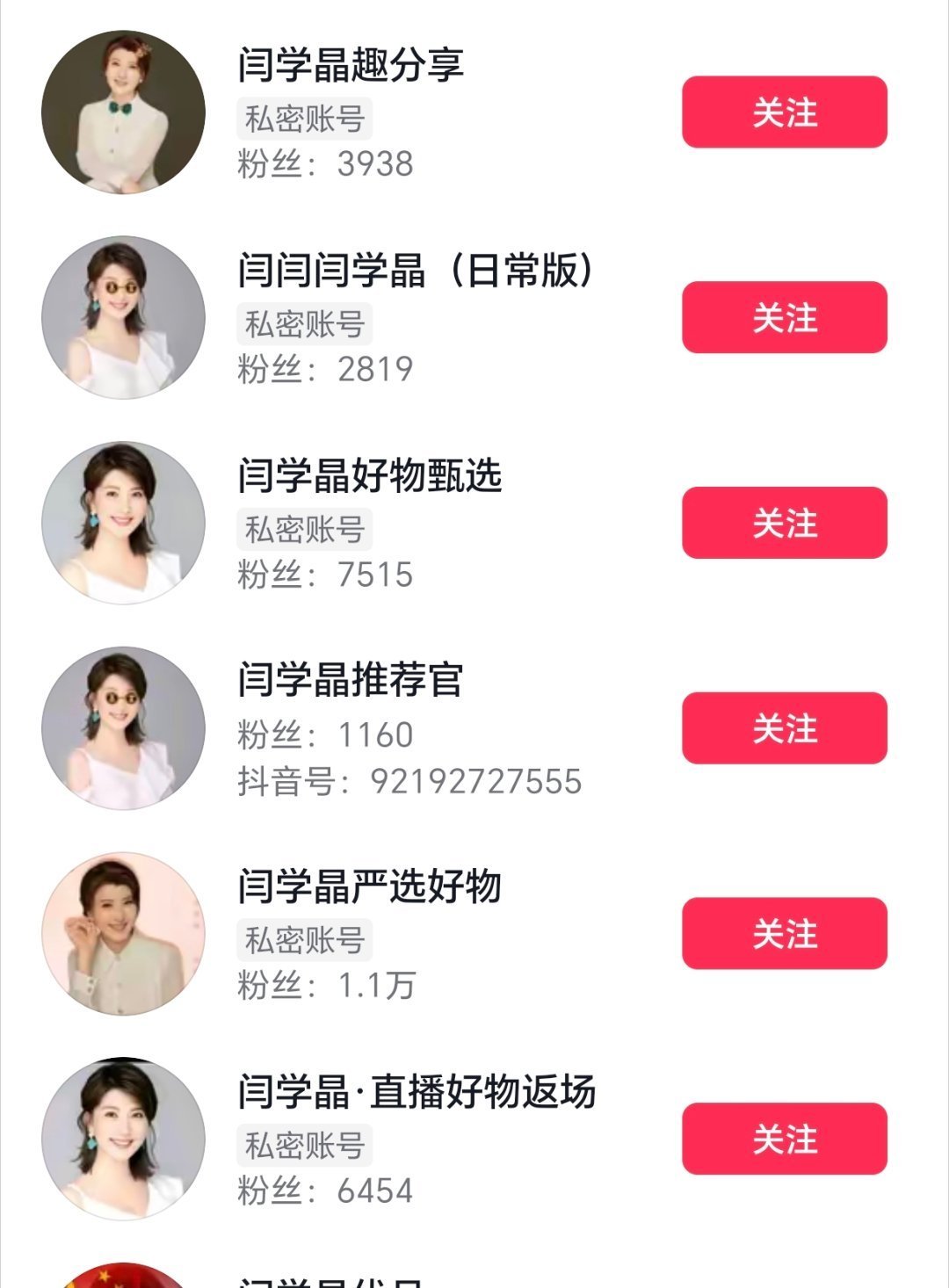 闫学晶儿子儿媳成立电商公司 得了吧,闫学晶的带货矩阵账号都集体私密了,这公司也没什么意义。