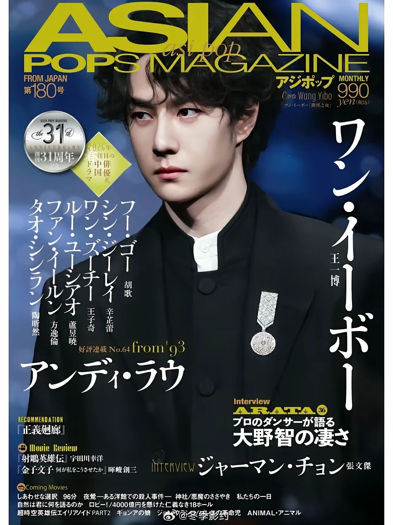 王一博第13次登上日本ASIAN POPS杂志封面,本期是特别报道王一博微博之夜盛况以及获奖作品《探索新境2》 ,不得不说,这张封面照选的是真好,非常权威。仔细看了看,王一博几乎每部作品都上过这封杂志,而且他的几部电影作品还反复重映,再一次证明樱花妹真的好喜欢王一博呀。怎能不喜欢啊,长得好看,还那么有实力,还多赛道破圈,还是非常拿得出手的外宣门面,这样的明星很难不爱呀!