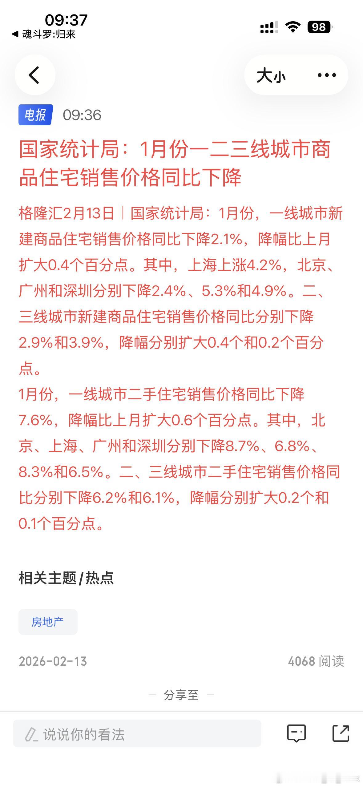 【琅河财经】今年别买房,前段时间到处看到地产见底反转的观点,且很多人是真的这样认为,果然只要股价涨了,什么问题似乎就都不存在了… ps. 我认为未来地产行业不存在全国性的反转和拐点了,只有结构性的拐点,比如一些人口净流入的一二线城市会企稳继续上涨(当然也需要很多年完成筑底),这一点完全可以参照日本,东京地区的房价是回到了 90 年代高点,但日本其他很多三四线地区房价永远不可能涨回去了,一直会在底部,没有任何反弹。2027年一线城市我觉得差不多。