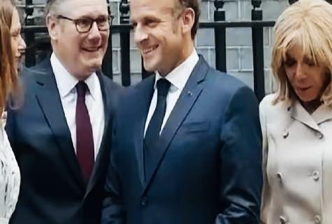 马克龙和斯塔默交流什么呢?笑的这么开心啊! 马克龙妻子布丽吉特的表情与丈夫形成了鲜明对比! 布丽吉特此时低着头在思考什么事情呢?