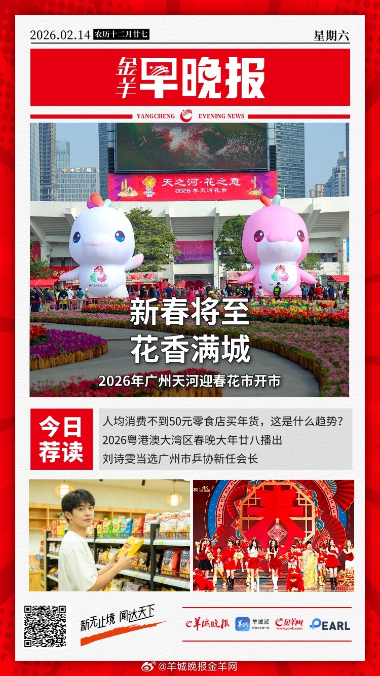 #金羊早晚报# 广州天河迎春花市启幕,传统年味碰撞科技新潮 房价涨了跌了?数据公布! 《互联网平台反垄断合规指引》发布 列明平台“二选一”行为等风险示例 应急管理部:加强烟花爆竹非法制售、储存的排查打击 佛山有人往河里“放生”亚克力板 AI眼镜成年货“新宠” !深圳龙岗全链抢滩万亿风口 过年出行,来看看广清高速这份出行指引! 人均消费不到50元零食店买年货,这是什么趋势 春节民宿房租乱象如何禁,供不应求是根本 西城男孩(Westlife):听我们的歌长大的歌迷,现在带着娃来看演唱会 | 专访 刘诗雯当选广州市乒协新任会长,将致力打造本地特色乒乓球品牌赛事 孙龙回应短道速滑1000米摘银:往回看只有失败,我只能往前走 范可新:希望大家永远记住那个很帅很飒的我 逾6亿美元拨款“被砍” 4州起诉特朗普政府 涉卢浮宫和凡尔赛宫门票欺诈 法国一大型诈骗网络被捣毁 更多精彩报道,请扫码关注羊晚全媒体报道!#花滑米兰惨案##羽生结弦的含金量还在上升##白敬亭告了宋轶的粉丝# #王栎鑫女儿因被怼脸拍生气#