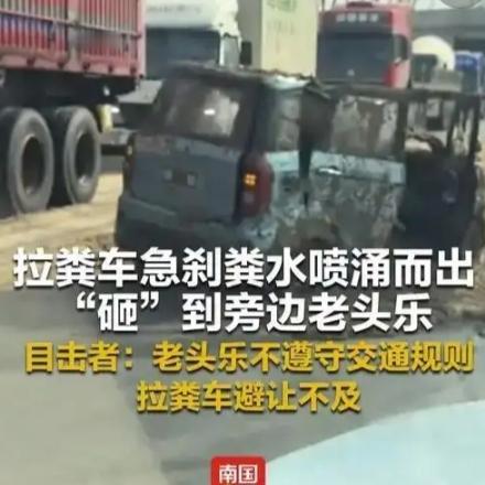 济宁突发!粪水从天而降砸扁老头乐,目击者一句话道出真相:这次真不怪货车司机 山东济宁街头,一场哭笑不得又引人深思的意外突然上演。2月12日,一辆满载粪水的运输车正常行驶,前方一辆老头乐突然违规变道、横穿马路,货车司机为避免正面碰撞猛踩急刹,瞬间罐内粪水喷涌而出,如瀑布般砸向老头乐,车身当场被压变形,大爷浑身被浇透,现场臭气冲天,隔着几条街都能闻到刺鼻气味。 不少网友看完直呼:又心疼又好笑,这下老头乐是真乐不起来了! 目击者直言,是老头乐不遵守交通规则在先,随意穿插、无视路况,货车司机实属避让不及。本是一起普通的交通险情,却因为“粪水浇身”的戏剧性结局,瞬间引爆全网热议。 这荒诞的一幕,笑过之后更该戳醒所有人。马路上的任性,从来都要付出代价。老头乐无牌无证、随意穿行、无视信号灯的乱象,早已成为道路安全的隐形炸弹,多少事故都源于这片刻的侥幸。货车司机的紧急避险,是本能也是无奈,若不是急打方向、猛踩刹车,后果可能是车毁人亡的悲剧。 意外从不是玩笑,安全更没有儿戏。比起滑稽的场面,更该警惕的是漠视规则的代价。道路安全不分年龄,不分车型,每一次违规穿行,都是在拿自己和他人的生命冒险。 网友纷纷留言:这下长记性了!规矩不是约束,是保命符!你觉得这起意外,责任该怎么算?
