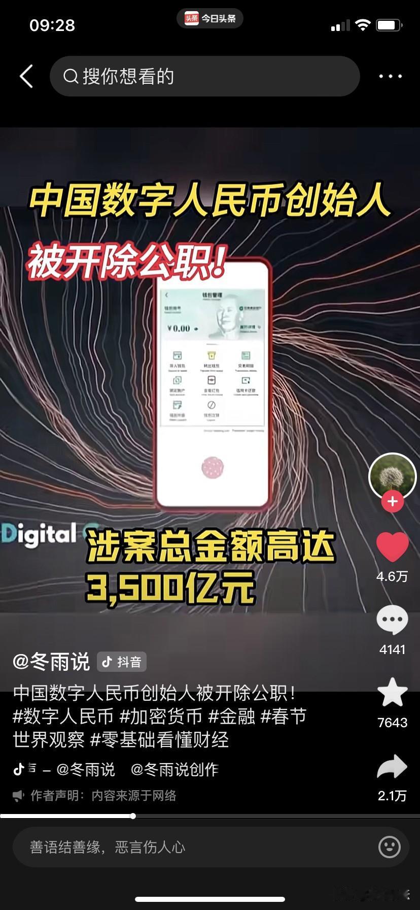 重磅消息!!中国数字人民币创始人被开除公职。 据央视新闻报道,中国数字人民币创始人摇前利用职务之便卷走400亿加密货币涉案金额高达3500亿元被开除公职。中国是数字人民币本来是标为打击金融犯罪的口号,没想到这个从清华大学的高材生,曾任中国人民银行货币研究所所长,在利益面前终于脱下了自己的伪装,昨天还在宣传数字人民币如何安全,数字人民币可以让打款方和收款方透明化,没想到今天,在人们刚接受了这一理念时,中国数字人民币创始人却先把自己送进去了,真是贪心不足蛇吞象啊❗[祈祷]