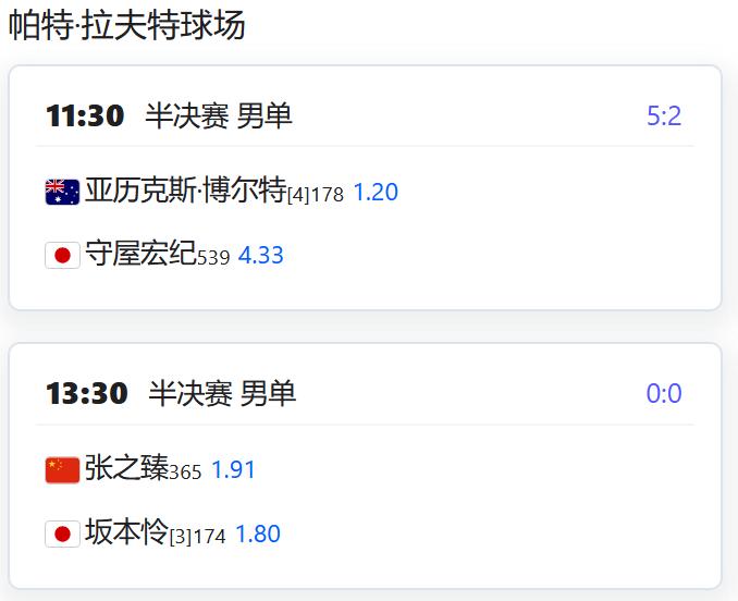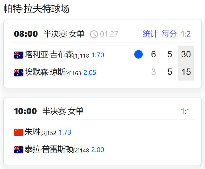 ATP250赛德拉海滩站,男单资格赛第一轮,吴易昺将对阵7号种子史密斯; CH75布里斯班,男单半决赛,张之臻将对阵3号种子日本球员坂本怜; W75布里斯班,女单半决赛,朱琳将对阵2号种子普雷斯顿。