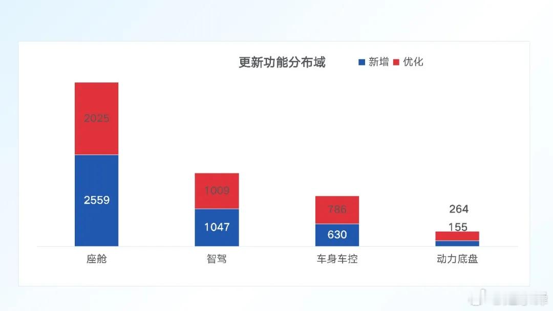 2025年,座舱域新增及更新功能的增长幅度高达39.3%,智驾域增长10%,车身车控增长7.2%。更值得玩味的是,座舱与智驾域的增长,主要来源于“新增功能”,而非简单的优化修补。这表明,车企正通过OTA开辟全新的功能场景与用户体验。”