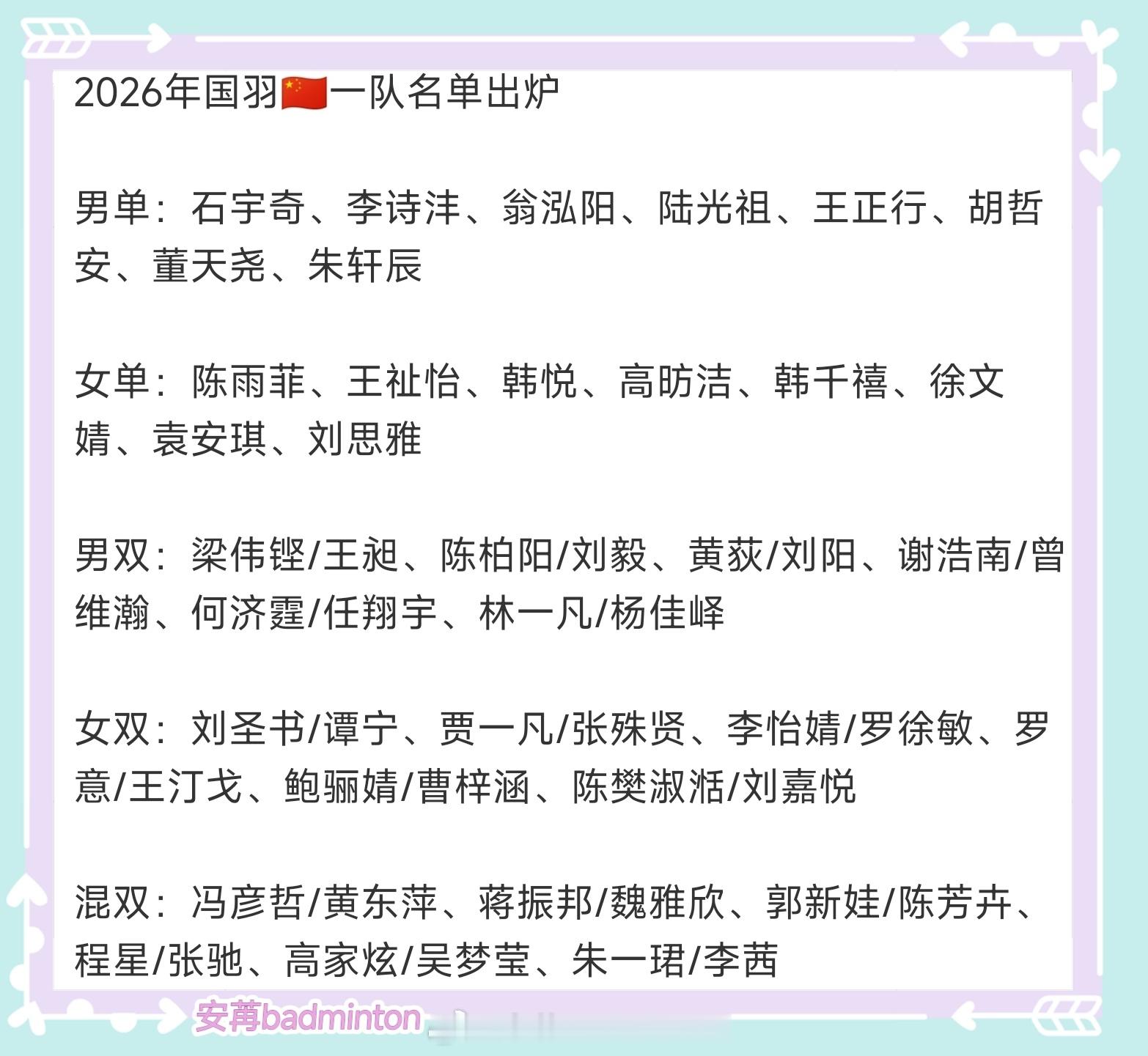 【仅供参考,具体名单以官方为准】羽毛球新年快乐
