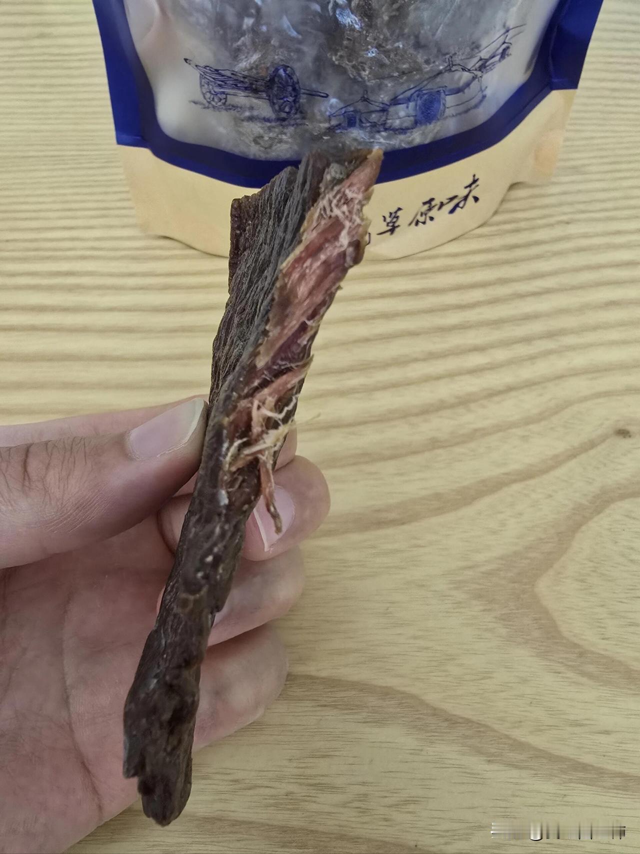 同事去内蒙出差给带的,放冰箱几天都忘记了(以为是伴手礼,看着感觉一般般)。最近减脂晚上饿了,本来不想吃的。耐不住饿,看着其貌不扬的,一口下去还是有点超出了我的预期。蛮好吃的,肉感很爽,有嚼劲,就是那种嚼起来奶香奶香的。我也是第一次吃到有奶香的肉。比我之前在超市买的好吃太多了。就是咸香之后嚼完回味有一丝丝奶香。同样的东西地域跟地域之间差距太大了。我大祖国好东西还是多呀,只是我们很少有机会吃到真的美食。晚上减脂吃一下还是挺不错的。