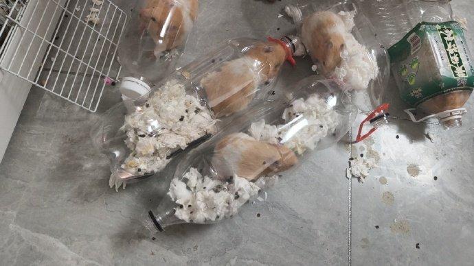 急!在线等!大家帮我看看,这样带仓鼠上高铁能行吗? 明天就要回老家了,家里的几只小可爱实在没人照顾,只能带走。我特意找了几个大号的矿泉水瓶,给它们做了“单间”,里面还塞了厚厚的纸棉,怕它们冷着。 现在已经全部打包好装进大包里了(如图2),从外面看完全看不出来。我就想问问,过安检的时候,只要我不说,是不是就能顺利带上去? 有没有经验的朋友支个招?我这心里七上八下的,万一被查出来,这瓶子好拿出来吗? 迷惑行为大赏