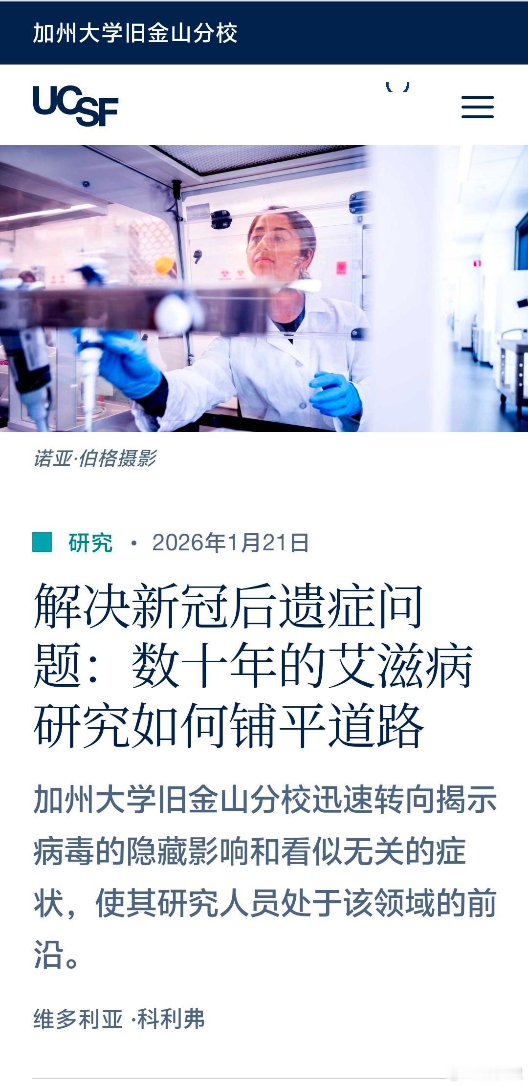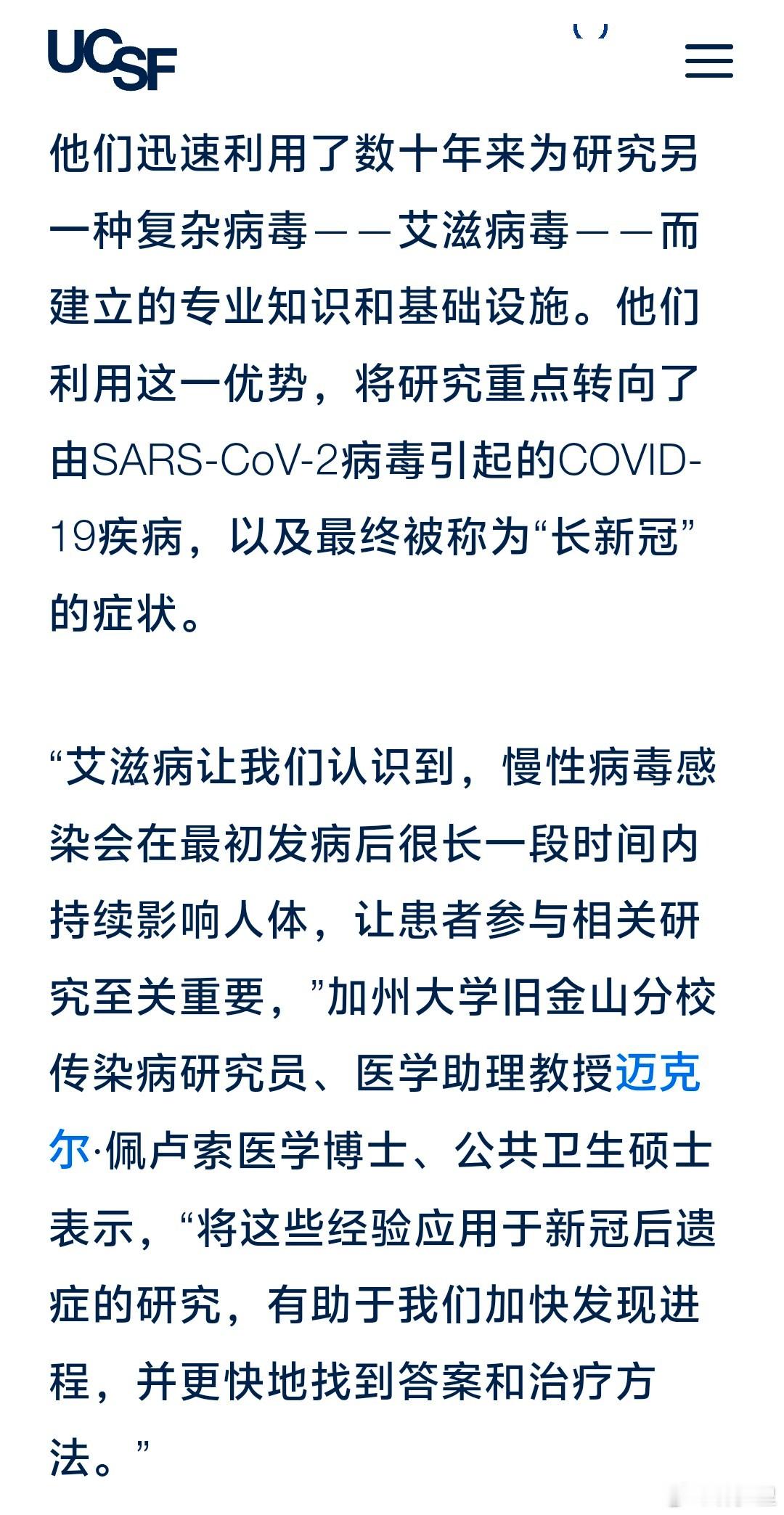 UCSF:解决新冠后遗症问题,数十年的艾滋病研究如何铺平道路。