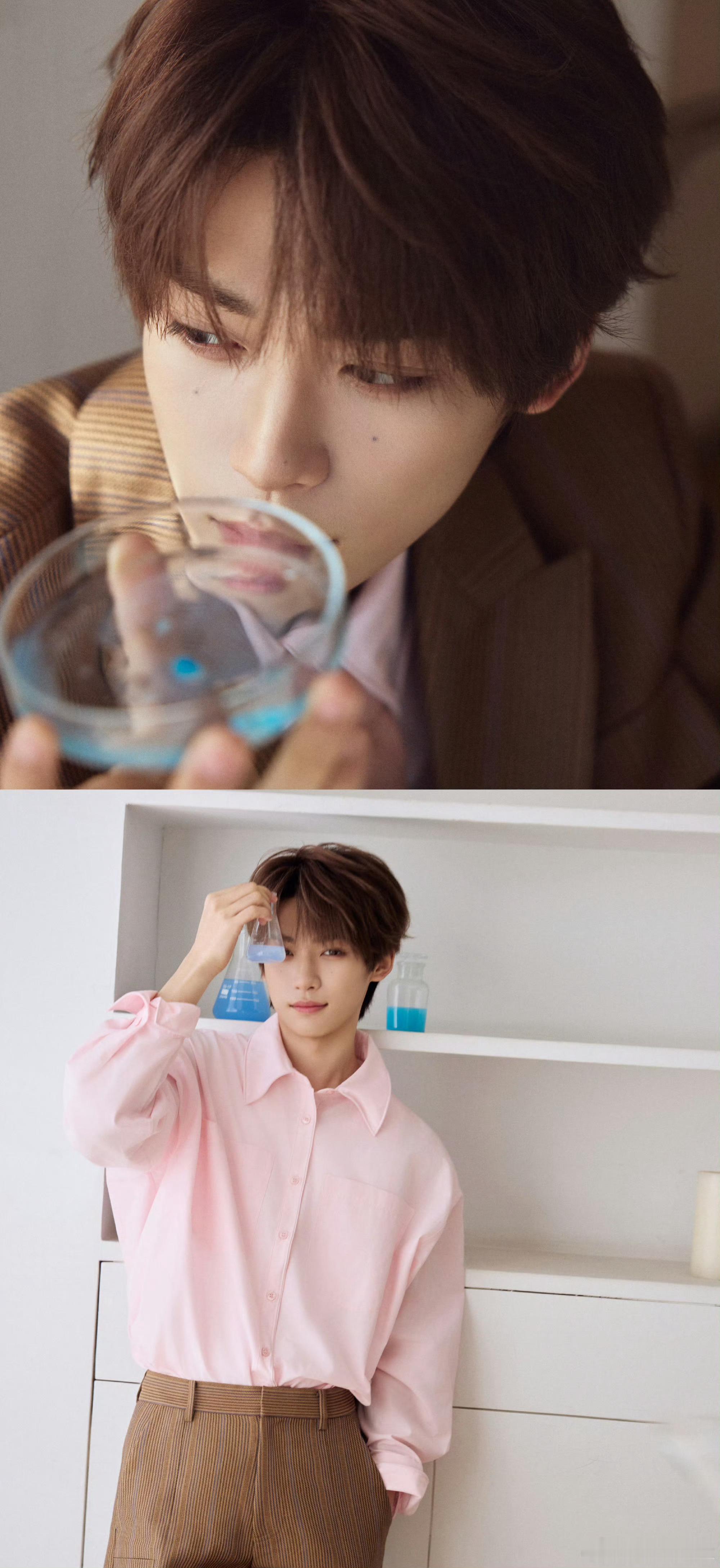 梓渝情人节营业图好浪漫衬衫穿的粉粉的花朵和药水都是蓝色的 梓渝说的常见面是下次演唱会和蓝海相见梓渝yuni双向奔赴