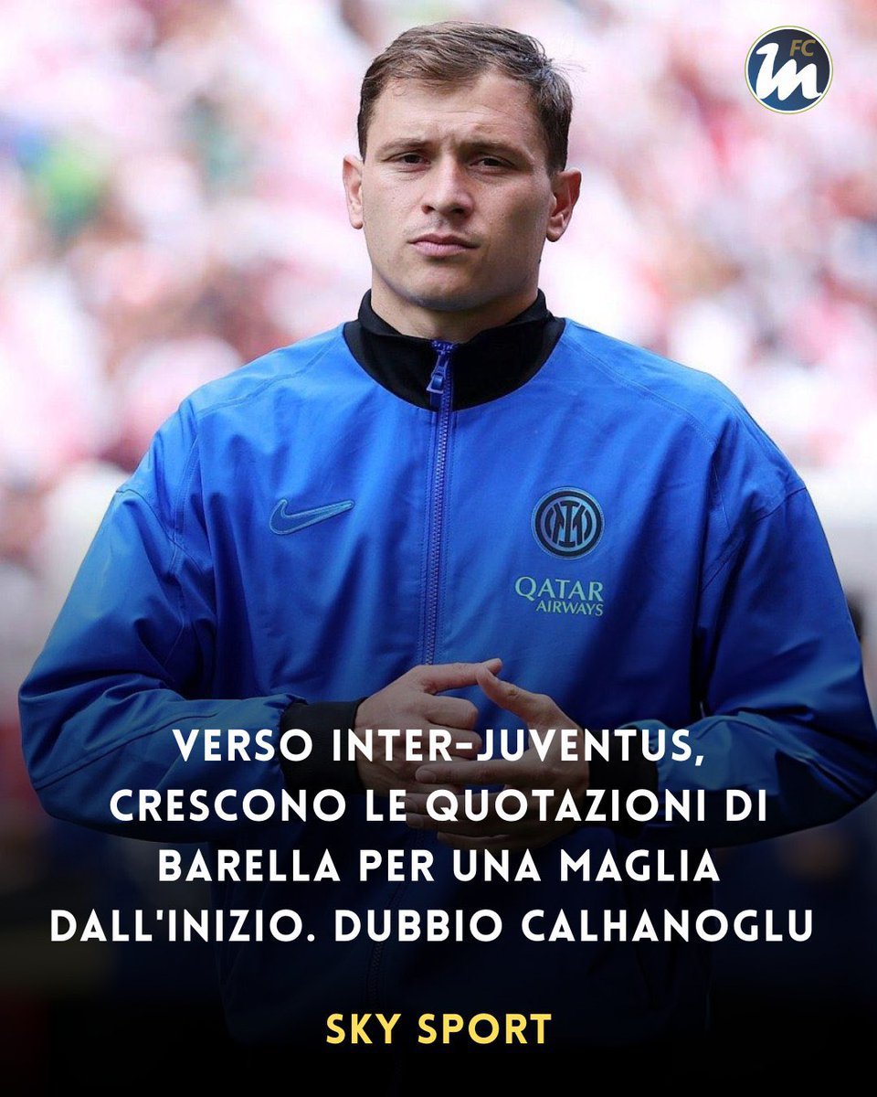 📈 巴雷拉与泽林斯基和姆希塔良组成中场的可能性正在上升,如果恰尔汗奥卢从替补席出发,苏契奇将是首选 ⚫🔵国米 巴雷拉