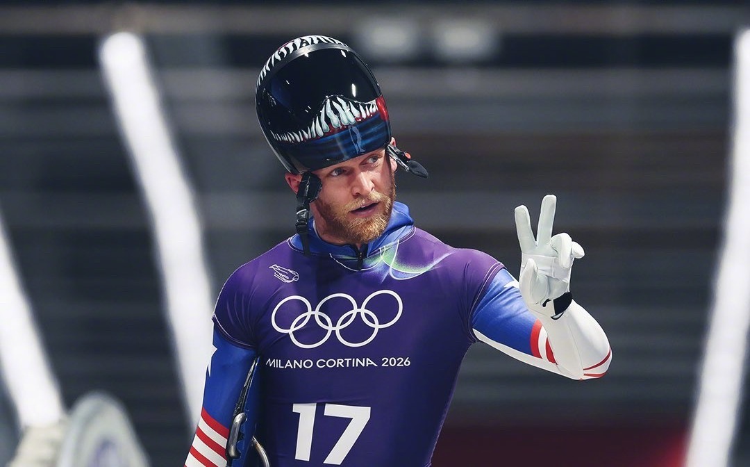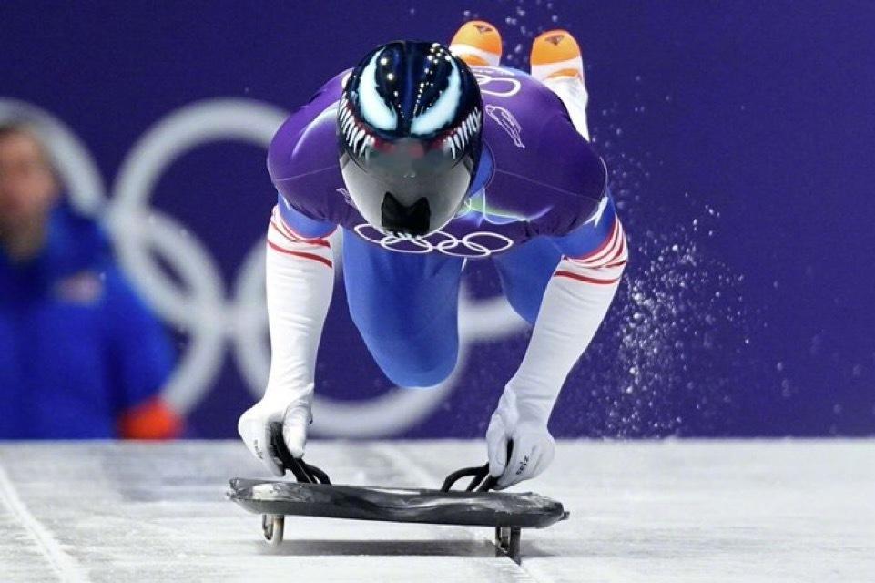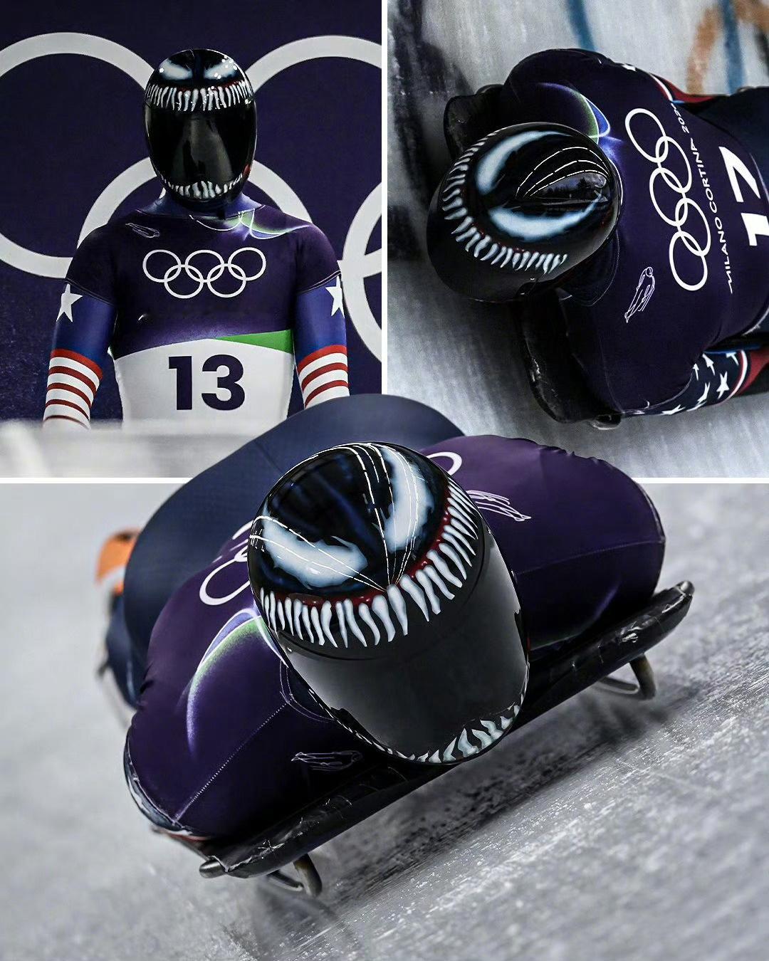美国钢架雪车运动员带毒液头盔 这个头盔帅啊