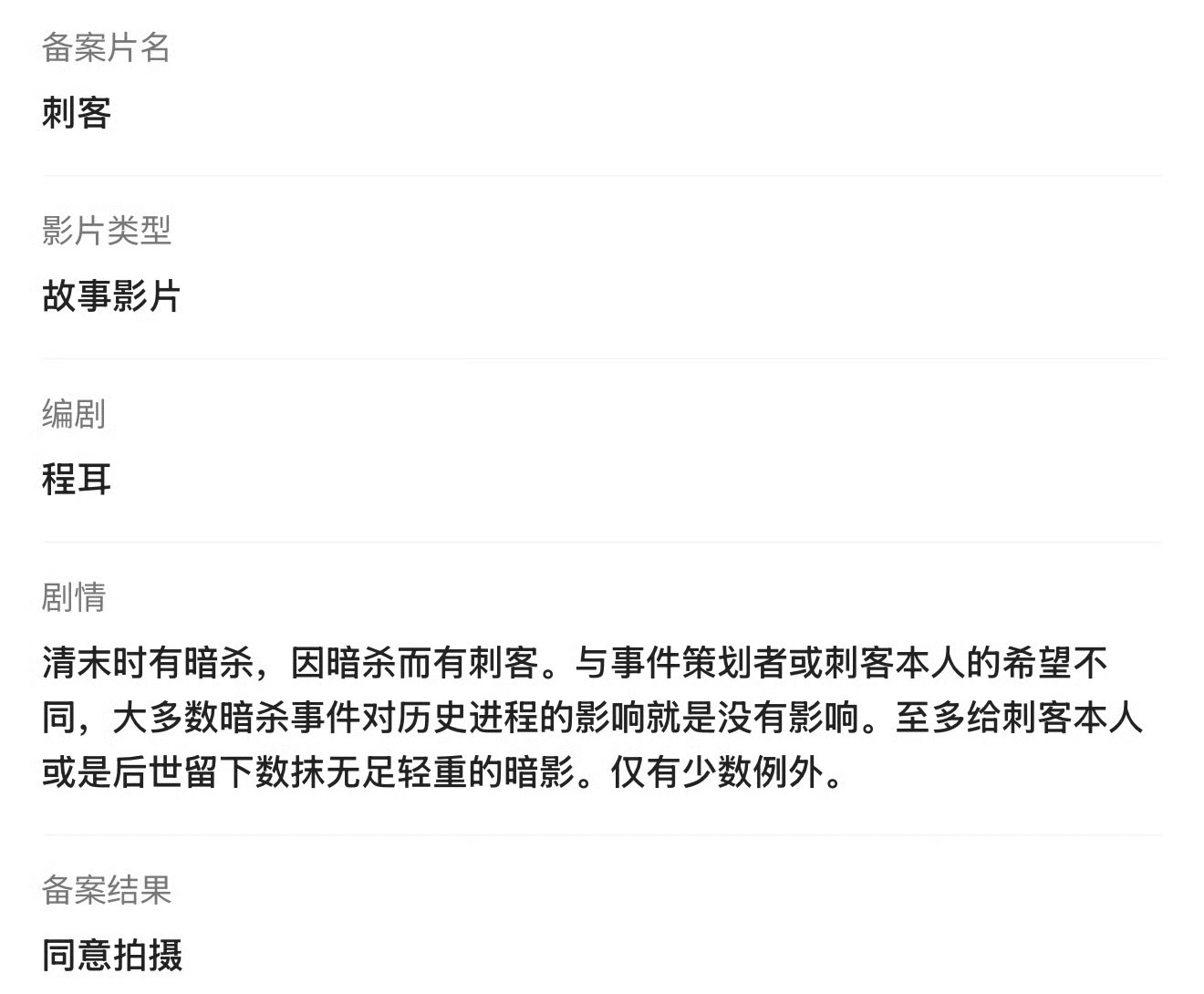 程耳新片刺客立项 程耳新片立项,也是热搜级的,看来《无名》与金鸡之后,耳导已成导演界顶流!