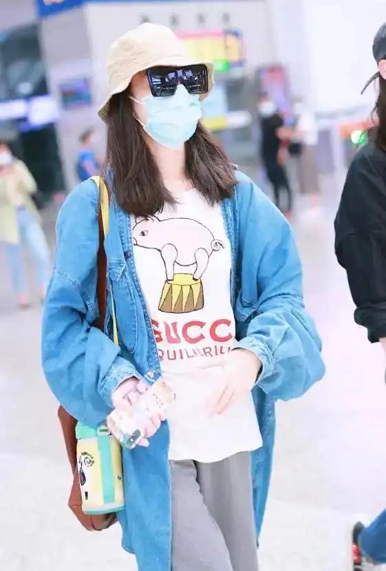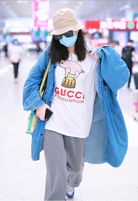 倪妮机场高调吸睛!四千多古驰 T 恤超惹眼,32 岁身材依旧苗条纤细