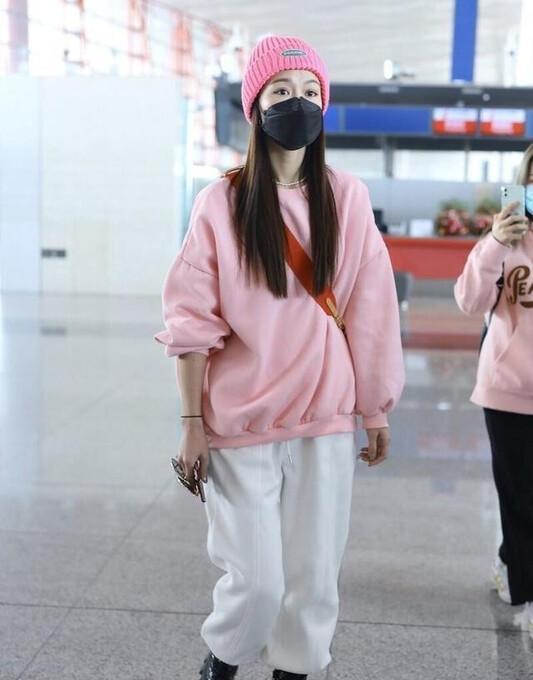 文咏珊身上的这款粉色卫衣,其颜色相对较浅,整体色系呢,比较具有荧光的感觉,因此,虽说它能达成很好的减龄效果,然而黄黑皮的女孩穿上之后也会显得黑,所以,黄黑皮的女孩要是打算尝试粉色卫衣,最好还是挑选灰粉色。