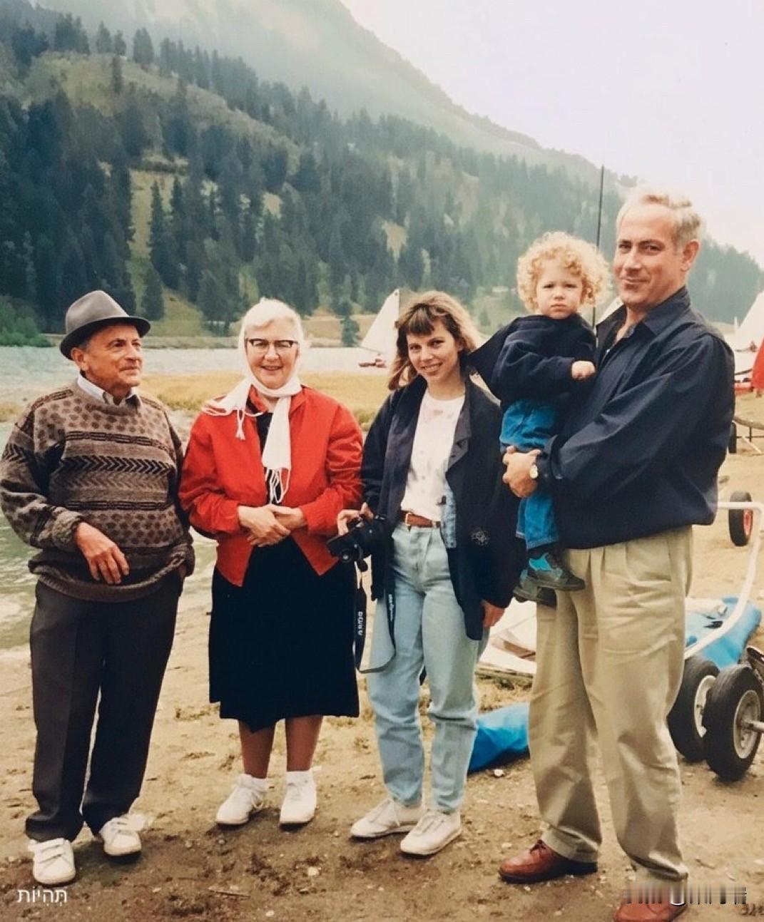 这张照片年轻时期的本雅明·内塔尼亚胡(Benjamin Netanyahu)及其家人在欧洲旅行时的合影。 根据相关影像资料,这张照片大约拍摄于 1993年,地点位于欧洲的山区。画面中内塔尼亚胡怀里抱着的是他的儿子亚伊尔(Yair),身旁站立的女性是他的妻子萨拉(Sara)。 内塔尼亚胡共有过三段婚姻: 第一任妻子: 米丽亚姆·魏茨曼(Miriam Weizmann),1972年结婚,1978年离婚。 第二任妻子: 弗勒·凯茨(Fleur Cates),1981年结婚,1988年离婚。 现任妻子: 萨拉·内塔尼亚胡(Sara Netanyahu,原姓Ben-Artzi),1991年结婚至今。 他共有三个孩子: 诺亚·内塔尼亚胡·罗斯(Noa Netanyahu-Roth): 与首任妻子所生的大女儿。 亚伊尔·内塔尼亚胡(Yair Netanyahu): 与现任妻子萨拉所生的长子(即照片中被抱着的男孩)。 阿夫纳·内塔尼亚胡(Avner Netanyahu): 与现任妻子萨拉所生的次子。