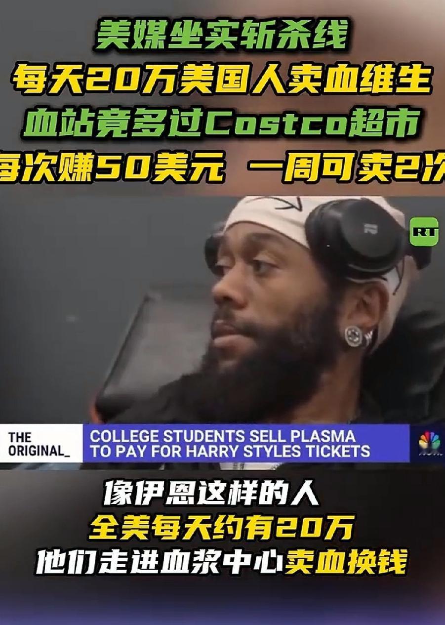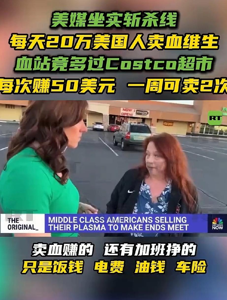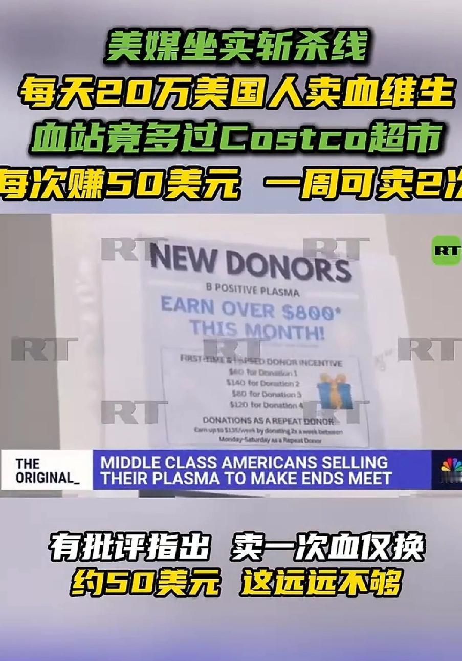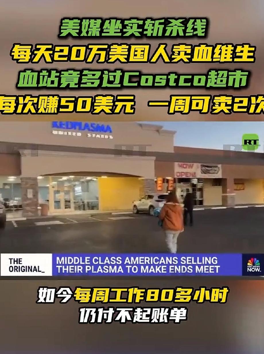 美国斩杀线坐实,大量美国人靠卖血维生,甚至包括曾经年入8.7万美元的高管。 去年小红薯对账,Tiktok难民潮,美国人讲他们卖血维生,我们中国人很多不信,现在美国自家媒体也终于意识到这个现实了。 采血站开得比超市都多,这就很能说明问题了。 这就是资本主义社会制度的巅峰之作,这不是个人问题,就是资本主义社会制度的必然结果。 点右上角关注我,我们一起去看这个魔幻的世界