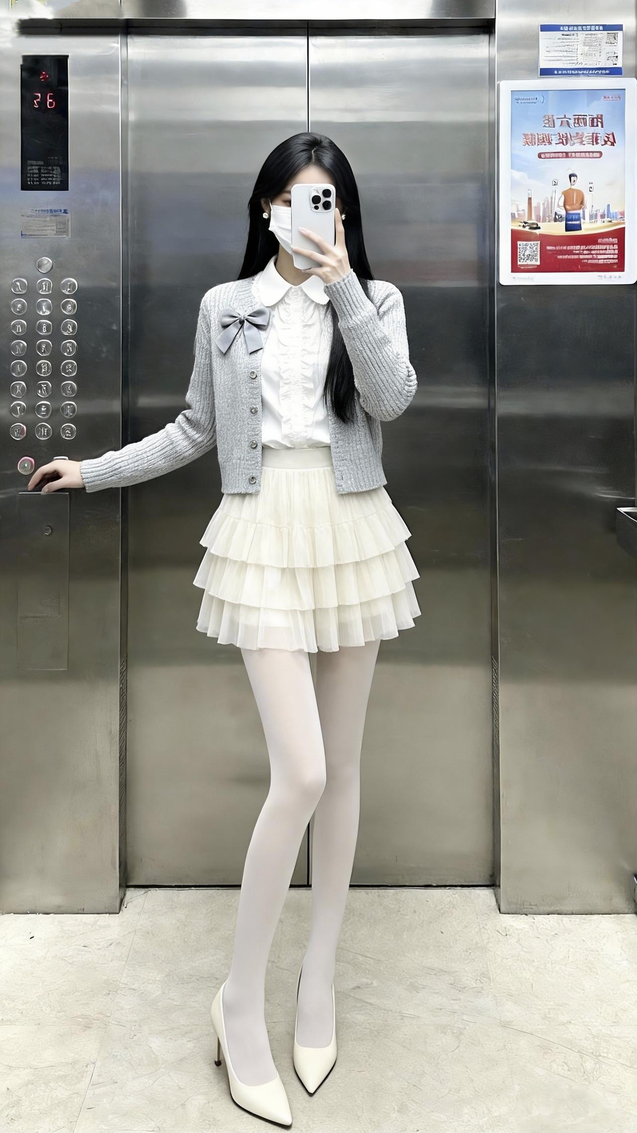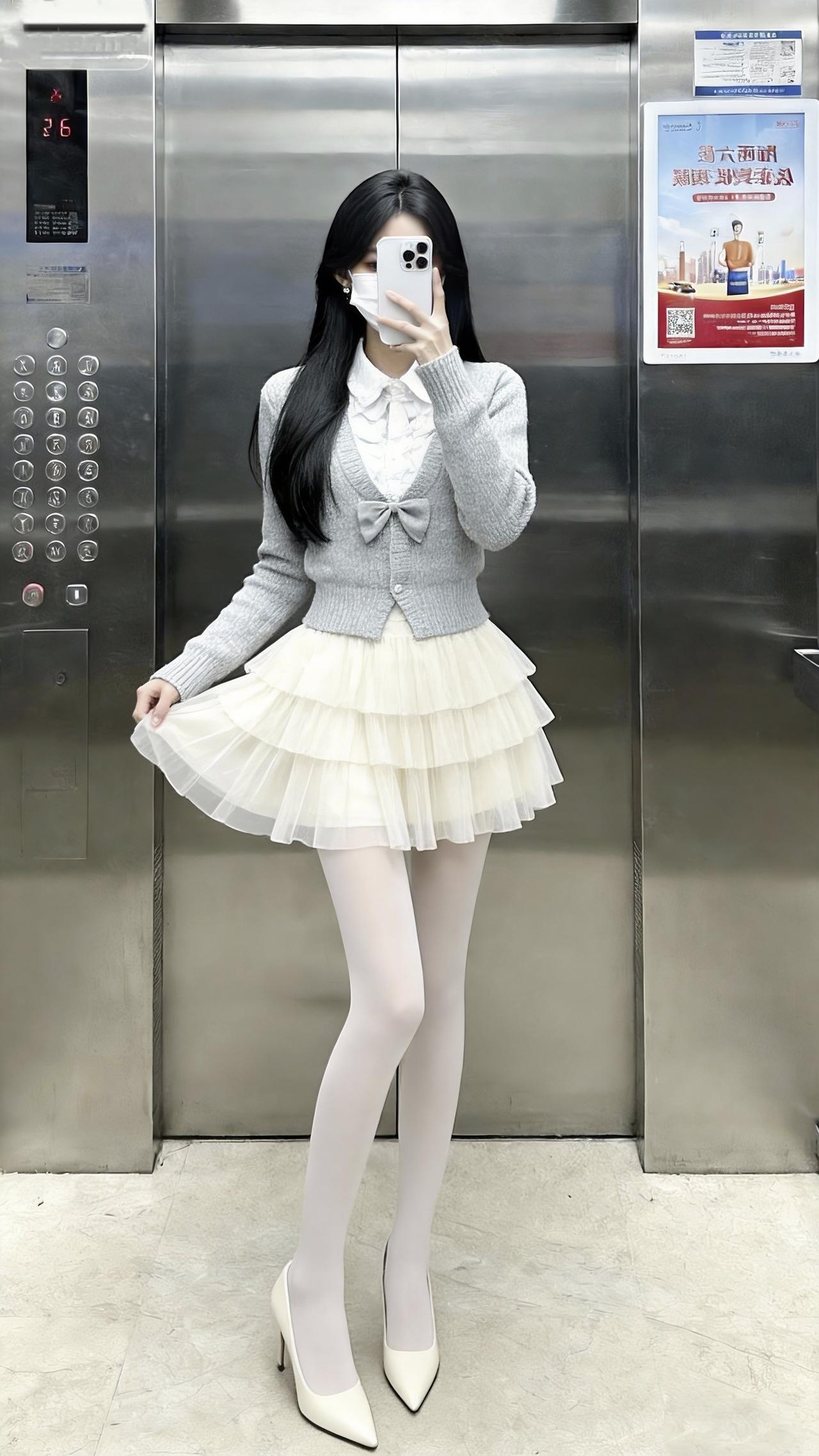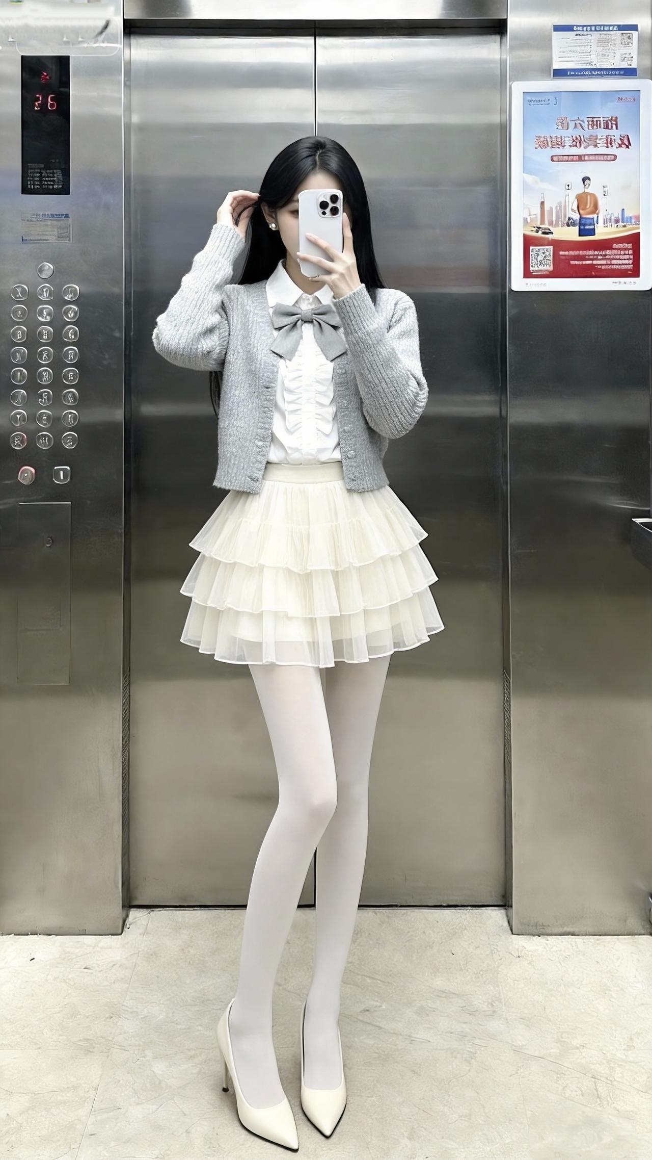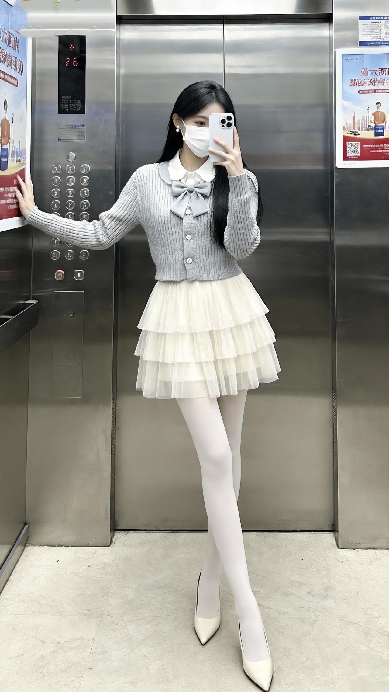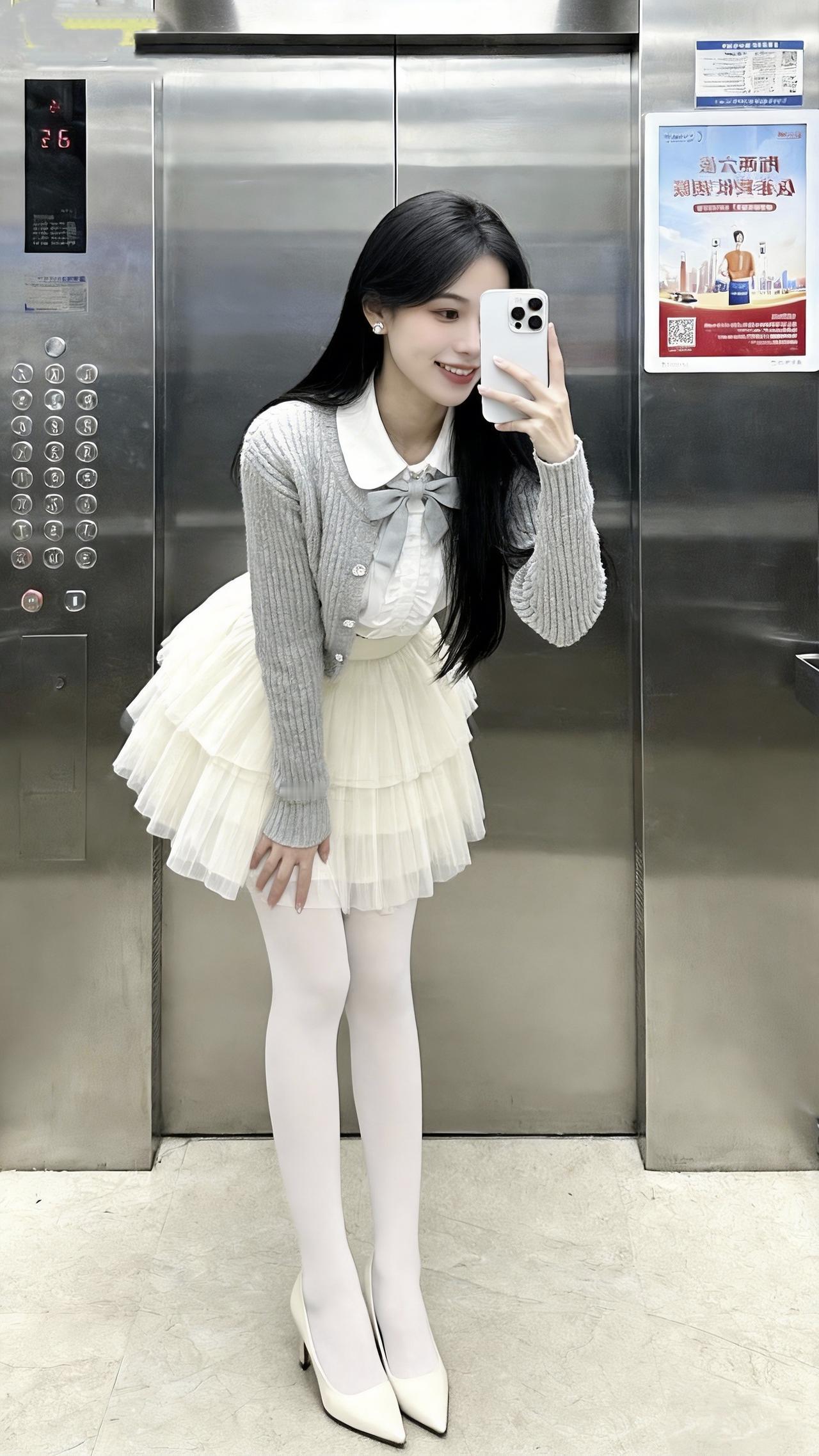 奶灰开衫裹着软乎乎的温柔,蓬蓬纱裙一摆像把云朵穿在了身上~白丝袜配尖头鞋,甜里藏着轻熟的精致!这种仙气软甜风你们爱了吗?穿搭 甜美穿搭 甜妹 电梯拍照