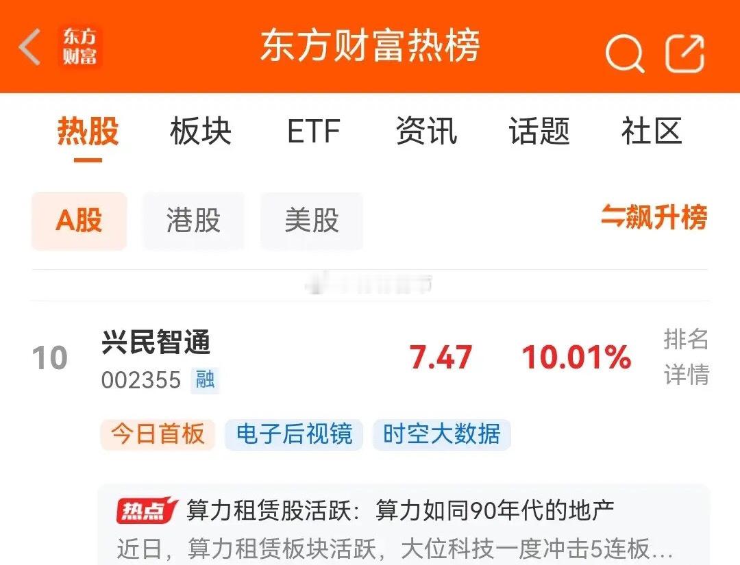 十、兴民智通。周五首板,现价7.47元,总市值49.94亿元。(电子后视镜、时空大数据)