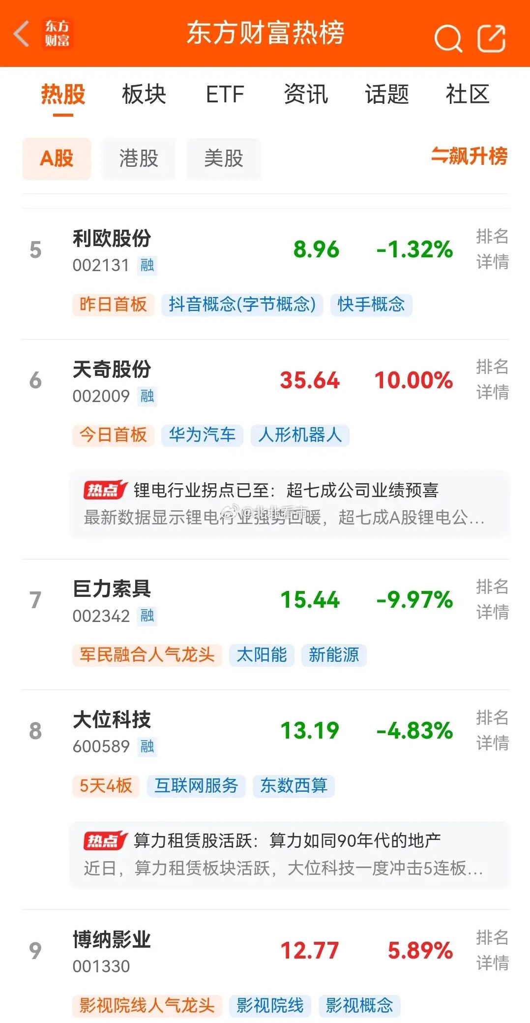 假期第一天,股市不开盘,目前东财最新人气热榜排行前十名如下: