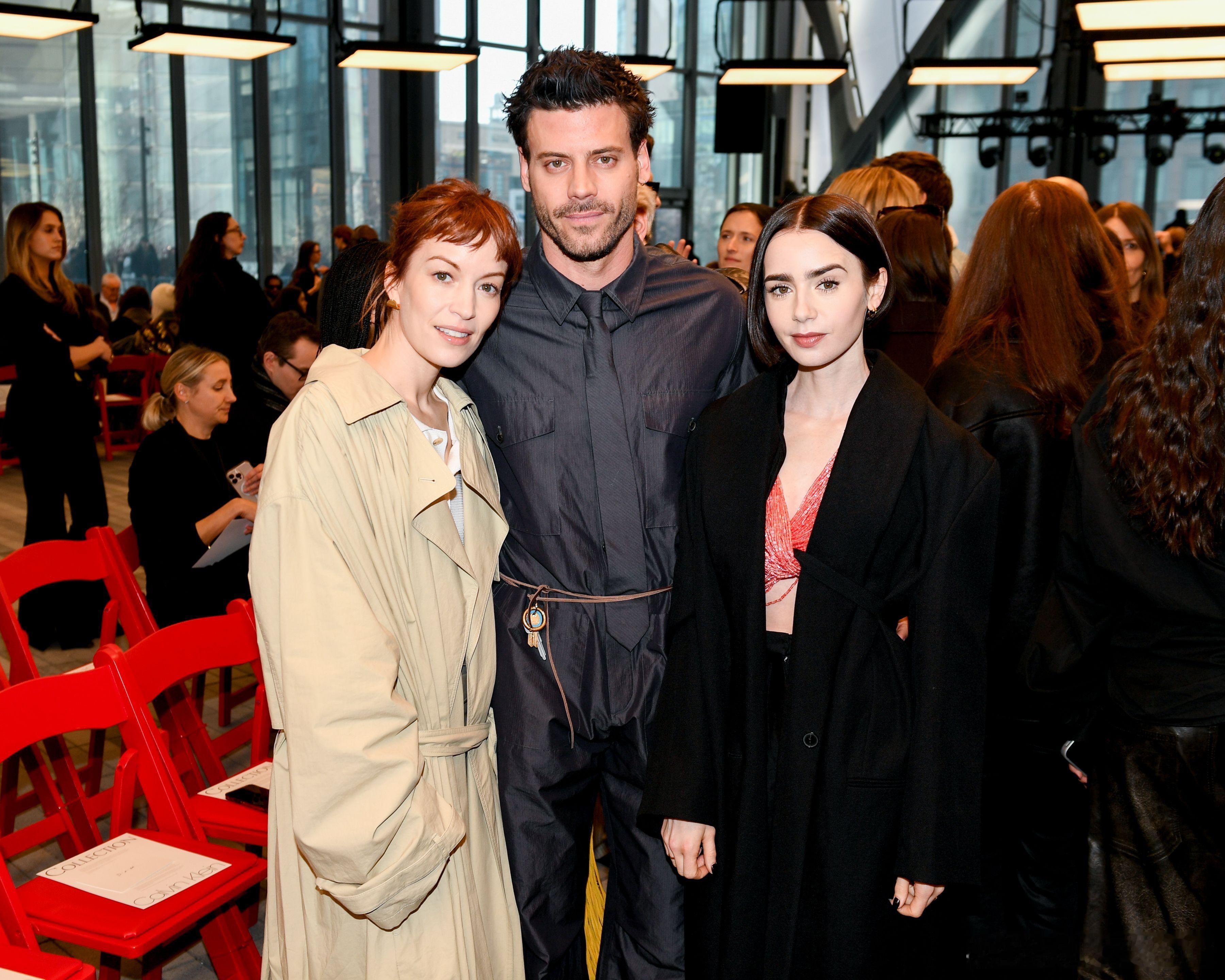 Lily collins莉莉柯林斯今天在纽约时装周出席观看Calvin Klein的大秀,和Britt Lower、Dakota Johnson还有Jodie Turner-Smith等人一起合影