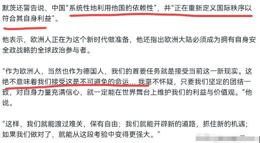 德国总理默茨点名中国,且把话说的非常硬!2月14日,根据美国之音报道,在慕尼黑安全会议开幕式上,德国总理默茨表示,世界已进入一个以“大国政治”为特征的新时代,中国“系统性地利用他国的依赖性”,并“正在重新定义国际秩序以符合其自身利益”。欧洲人正在为这个新时代做准备,欧洲大陆必须成为拥有自身安全政战略的全球政治参与者。 默茨的这些言论发表在第62届慕尼黑安全会议开幕式上,而这场会议本身正处于欧洲寻求战略自主的关键节点。 他明确将当前世界定义为“大国政治”主导的新时代,却刻意给中国贴上“系统性利用他国依赖性”“重新定义国际秩序以谋私利”的标签,这种表述既缺乏事实支撑,也与中德、中欧长期以来的合作现实相悖。 默茨的访华行程早已敲定,官方信息显示他将于2月24日至27日对中国进行上任后的首次访问,随行的还有高级商务代表团,德国外长此前的访华行程也被视为为此行铺路。 一边是即将开启的经贸合作之旅,一边是公开场合的不友好定性,这种矛盾姿态让外界对德国的对华政策走向产生诸多疑问。 事实上,中德经贸往来一直保持紧密态势,德国企业在华获得了丰厚回报,中国市场也为德国经济增长提供了重要动力,所谓“系统性利用依赖性”的说法完全站不住脚。 国际秩序的演变源于全球格局的自然发展,中国始终是多边主义的维护者和国际秩序的完善者,而非所谓的“重新定义者”。 中国推动的“一带一路”倡议与欧洲互联互通战略多次实现有效对接,匈塞铁路塞尔维亚段的通车就是典型例证,这些合作都遵循共商共建共享原则,给参与各方带来了实实在在的利益。 默茨忽视这些客观事实,转而采用带有偏见的表述,本质上反映出欧洲在大国博弈背景下的战略焦虑。 这种焦虑并非凭空产生。近年来美国政府的一系列举措让欧洲深感不安,特朗普政府的关税威胁、对欧洲极右翼的公开支持以及在安全问题上的单边主义做法,都让欧洲意识到依赖美国的风险。 默茨此前就曾公开表示“美国治下的和平”已经落幕,呼吁欧洲加快实现防务独立,这次在慕安会上的表态,某种程度上是欧洲寻求自主定位的延伸。但将这种内部战略调整的诉求转化为对中国的不当指责,显然找错了方向。 中德关系自建交以来始终保持稳健发展,默茨本人此前也曾在会见王毅时承认,德中政治经贸等各领域合作持续推进,符合双方利益。 2025年前11个月,中欧贸易总值已达到5.37万亿元,同比增长5.4%的幅度让双边经贸联系的紧密性不言而喻。中欧班列累计开行突破12万列的成绩,更证明了双方合作的韧性与潜力。这些数据都在说明,中德、中欧之间是相互依存、互利共赢的伙伴关系,而非所谓的“利用与被利用”关系。 默茨强调欧洲需要“坚定团结一致”“维护自身利益与价值观”,这一诉求本身无可厚非。但真正的战略自主不应以制造对立为代价,更不能基于误解和偏见制定政策。 欧洲当前面临的防务依赖、经济增长乏力等问题,根源在于自身内部的协调与发展,而非外部国家的发展。中国一贯支持欧洲一体化和战略自主,始终将欧洲视为多极世界中的重要一极,这种立场从未改变。 即将到来的访华行程本应是中德增进互信、深化合作的契机。默茨在慕安会上的不当表态,无疑给双边关系带来了不必要的干扰。 国际社会期待德国能秉持理性务实的对华态度,摒弃偏见与误解,正视中德合作的巨大价值。 毕竟,在复杂多变的全球格局下,合作共赢才是解决问题的正道,对抗与指责只会让各方陷入双输的局面。中德作为世界主要经济体,都肩负着维护全球和平稳定、促进共同发展的责任,唯有坚持相互尊重、平等相待,才能推动双边关系行稳致远,为世界注入更多确定性。
