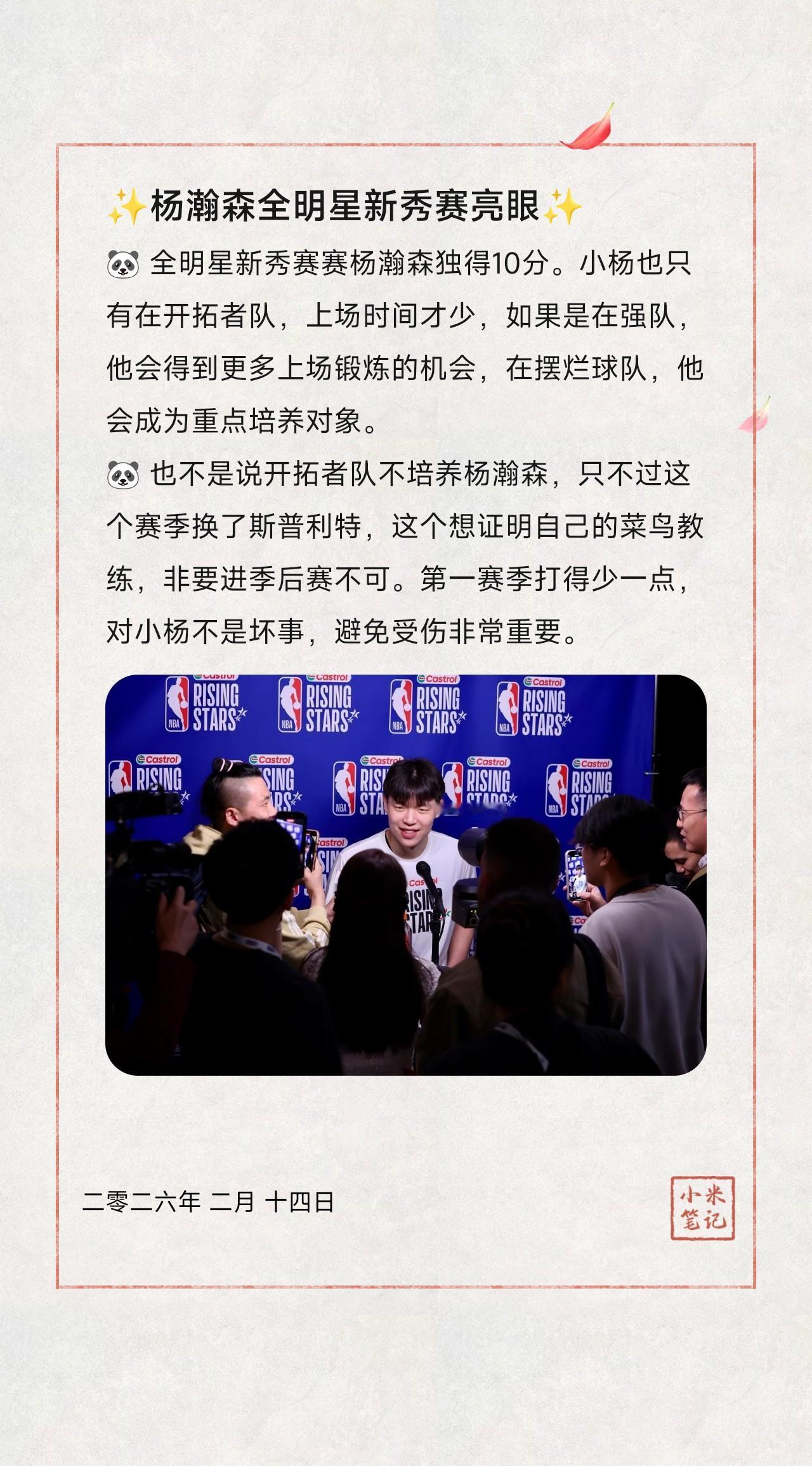 🐼 全明星新秀赛赛杨瀚森独得10分。小杨也只有在开拓者队,上场时间才少,如果是在强队,他会得到更多上场锻炼的机会,在摆烂球队,他会成为重点培养对象。 🐼 也不是说开拓者队不培养杨瀚森,只不过这个赛季换了斯普利特,这个想证明自己的菜鸟教练,非要进季后赛不可。第一赛季打得少一点,对小杨不是坏事,避免受伤非常重要。 🐼 NBA这个比赛强度,太容易受伤了。贫道个人认为 ,杨瀚森不受伤是最重要的。一旦受伤,连国家队比赛都打不了。而且,只要不受伤,今年的广告代言费是2000万,明年就是翻倍了,再明年就上亿了。 ——打球? 还打个球啊!只要别受伤就行! 作者:龙须面🧐