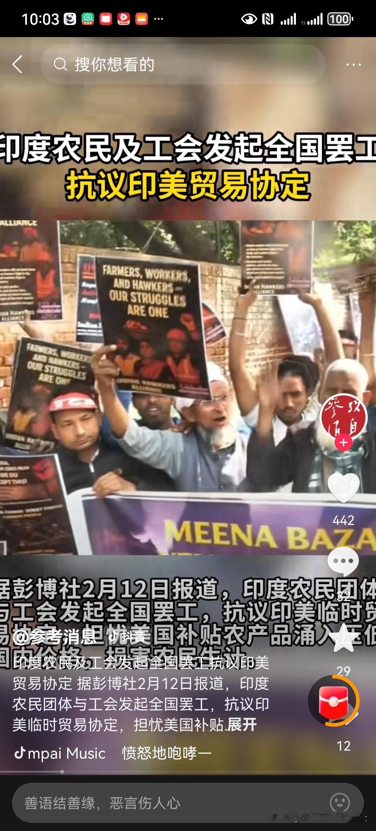 不知道是谁透露出去的消息,有些条款可是不能公开的哟,莫迪这下拿到头疼了? 据说这次全国性的工人、农民大罢工为人类史上最大规模,有3亿人参加,如果属实,这场面也太壮观了。 莫迪可能也懊恼,好不容易等到老美同意降低关税并签定贸易协定的表态,这可是个好机会,虽然开放农产品市场、购买5000亿美元美国商品可能对本国产业造成一定冲击,但从长远看利大于弊,这些老百姓咋就没有大局观呢? 当务之急是要快速平息这场群众运动,别影响了正式贸易协定的签定,事关国运,看法力无边的大仙如何凭自己的三寸不烂之舌让上上下下服服帖帖。