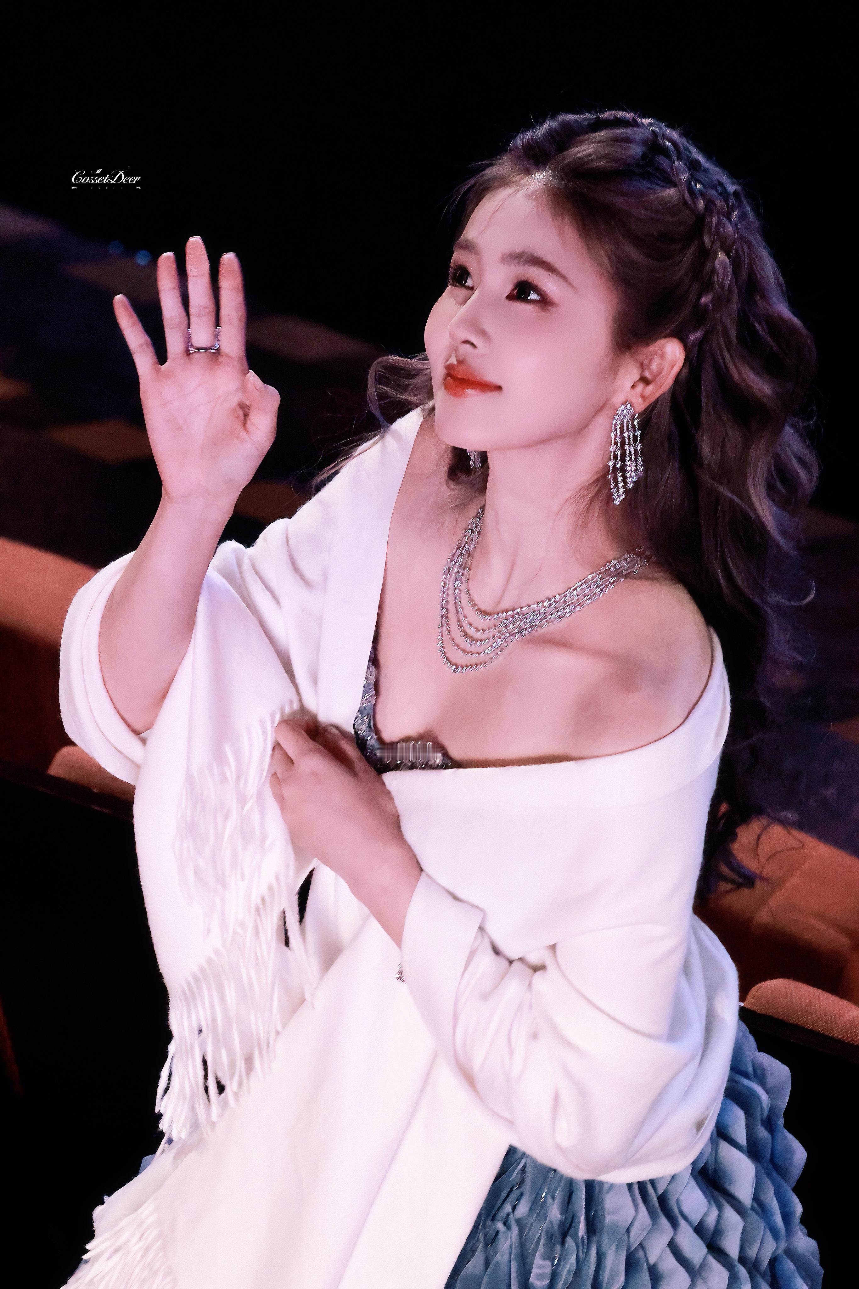 白鹿 抹胸裁出玲珑骨,蓝裙漾开万千波,聚光灯下,优雅与明艳撞了个满怀。白鹿