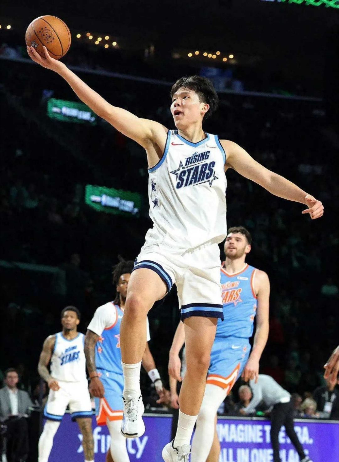 中国双星闪耀全明星!杨瀚森、王鹤棣各砍10分,状元郎5投0中状态低迷王鹤棣NBA全明星总得分30分 2026年NBA全明星周末精彩上演,赛场内外星光熠熠,中国双星杨瀚森与王鹤棣分别在新秀挑战赛和名人赛中大放异彩,用亮眼表现点燃全场。在新秀挑战赛中,杨瀚森代表里弗斯队出战,替补登场8分钟,便交出5投4中、三分2中1、罚球1中1的高效数据,斩获10分2篮板,得分位列全队第二,成为全场最具存在感的亚洲球员。比赛中,他一登场便手感火热,右侧45度三分空心入网迅速打开局面,随后凭借细腻内线脚步点飞防守完成上篮,还打成一次2+1,展现出空间型内线的全能属性。尽管里弗斯队34-40不敌安东尼队无缘决赛,但杨瀚森出手果断、终结稳健,在有限时间里打出超高效率,尽显扎实的篮球基本功。另一边,王鹤棣第三次站上NBA全明星名人赛赛场,代表字母哥队出战,全场9投5中,贡献10分4篮板,助力球队65-58击败对手,实现个人名人赛三连胜。赛场上的他活力拉满,多次凭借积极跑位冲击篮下得手,接林书豪长传快攻上篮得分后,做出偶像詹姆斯的“霸王步”庆祝动作,引爆全场氛围。下半场他被提上首发,攻防两端态度在线,不仅进攻高效,还积极拼抢篮板,用拼搏与热爱诠释对篮球的执着。在新秀赛另一场半决赛中,卡特队41:36力克麦迪队。卡特队的76人新秀埃奇库姆发挥神勇,8投6中砍下17分5篮板,是球队取胜的最大功臣;而麦迪队这边,去年的状元秀里萨谢状态低迷,全场5投0中,1分未得,表现令人大跌眼镜。