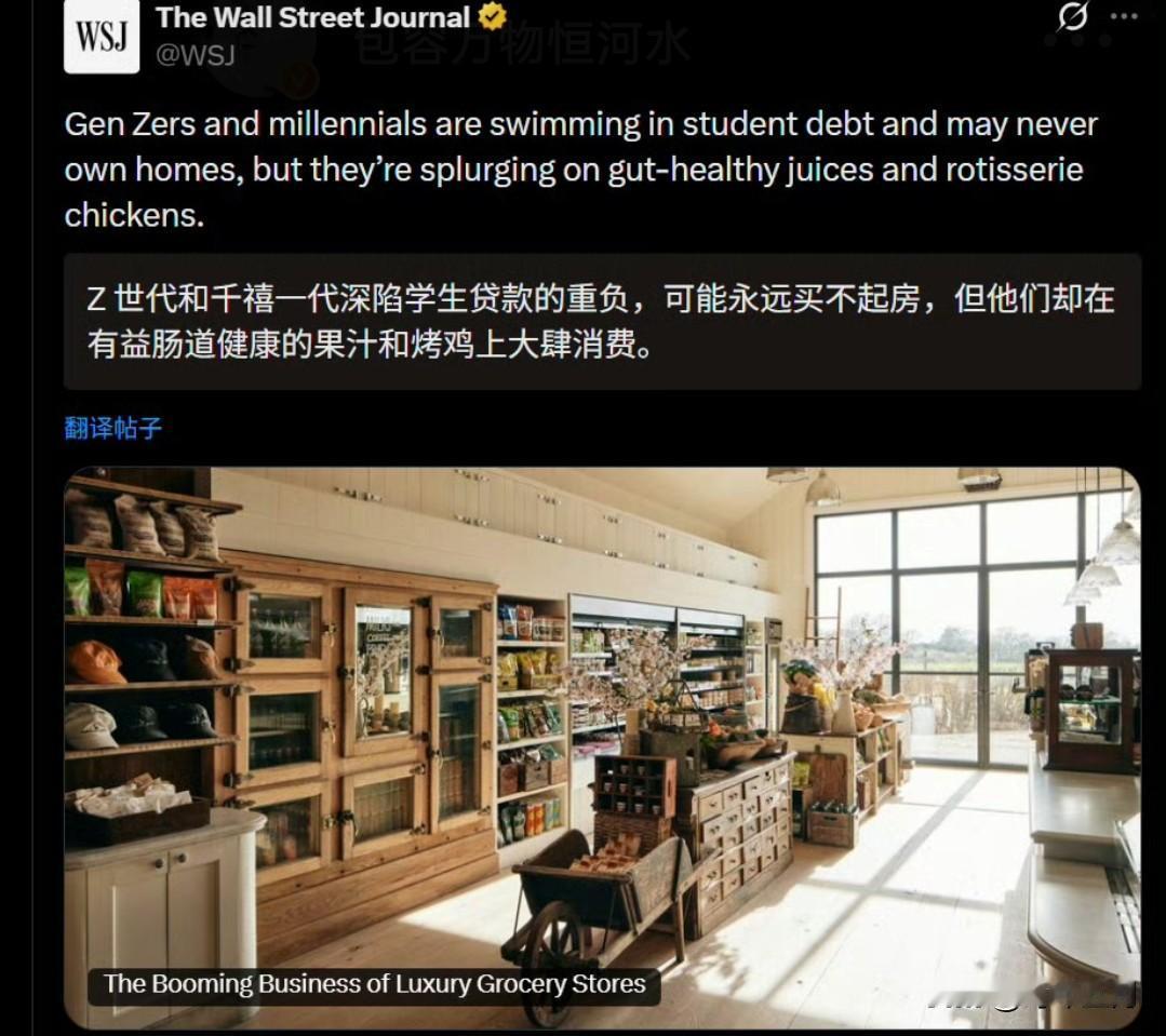 🔻华尔街时报昨天发了一篇文章,称美国年轻一代“吃炸鸡和果汁上瘾”,导致年轻美国人“在背负学生贷款的重负和可能永远买不起房的情况下陷入贫困”。 🔻“虽然你们背负了十几万美元的学贷,一辈子都付不起几十几百万美元的房贷,但是你们怎么能吃炸鸡和果汁呢?” 🔻这个逻辑实在太斩杀线了,被美国网民喷死了。 🔻“一只烤鸡在 2026 年成了奢侈品。” 🔻“想吃真正的食物就被视为‘挥霍’。” 🔻仔细想想,可怕极了。