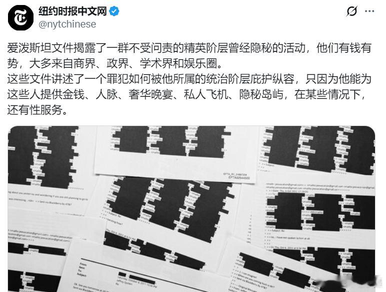 纽约时报:如今,在民粹主义情绪高涨、不平等日益加剧的背景下,这种逍遥法外的故事显得愈发令人愤慨。爱泼斯坦 及其圈子的卡里古拉式荒诞放纵的行径持续了20多年。而这期间,美国制造业衰落,次贷危机爆发,数以百万计的美国人失去了家园。
