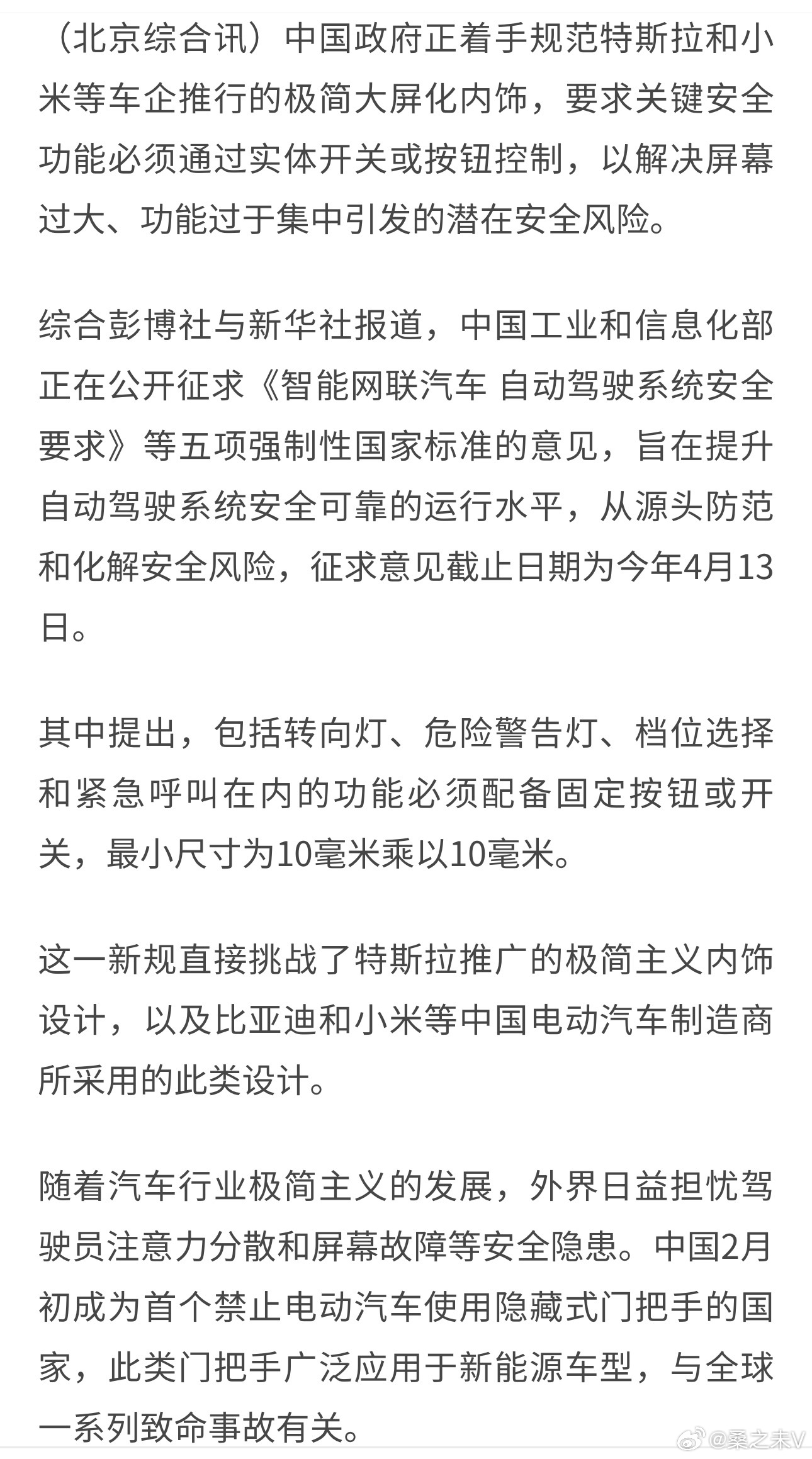 工信部发布征求意见稿,着手整顿新能源车企的极简内饰设计。桑之未汽车行业观察