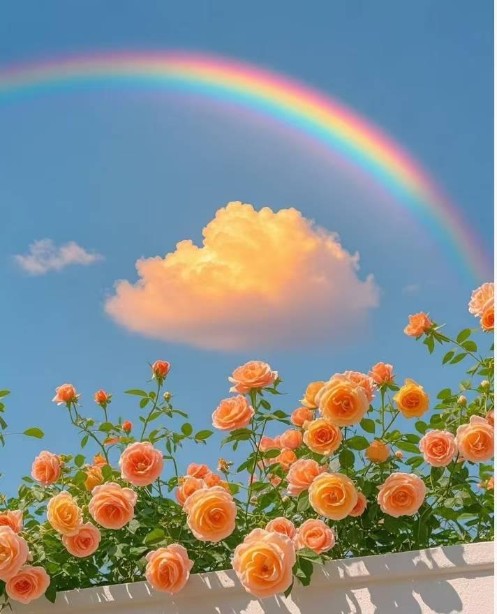 梦幻彩虹下的浪漫玫瑰,阳光洒满心间。🌈🌹