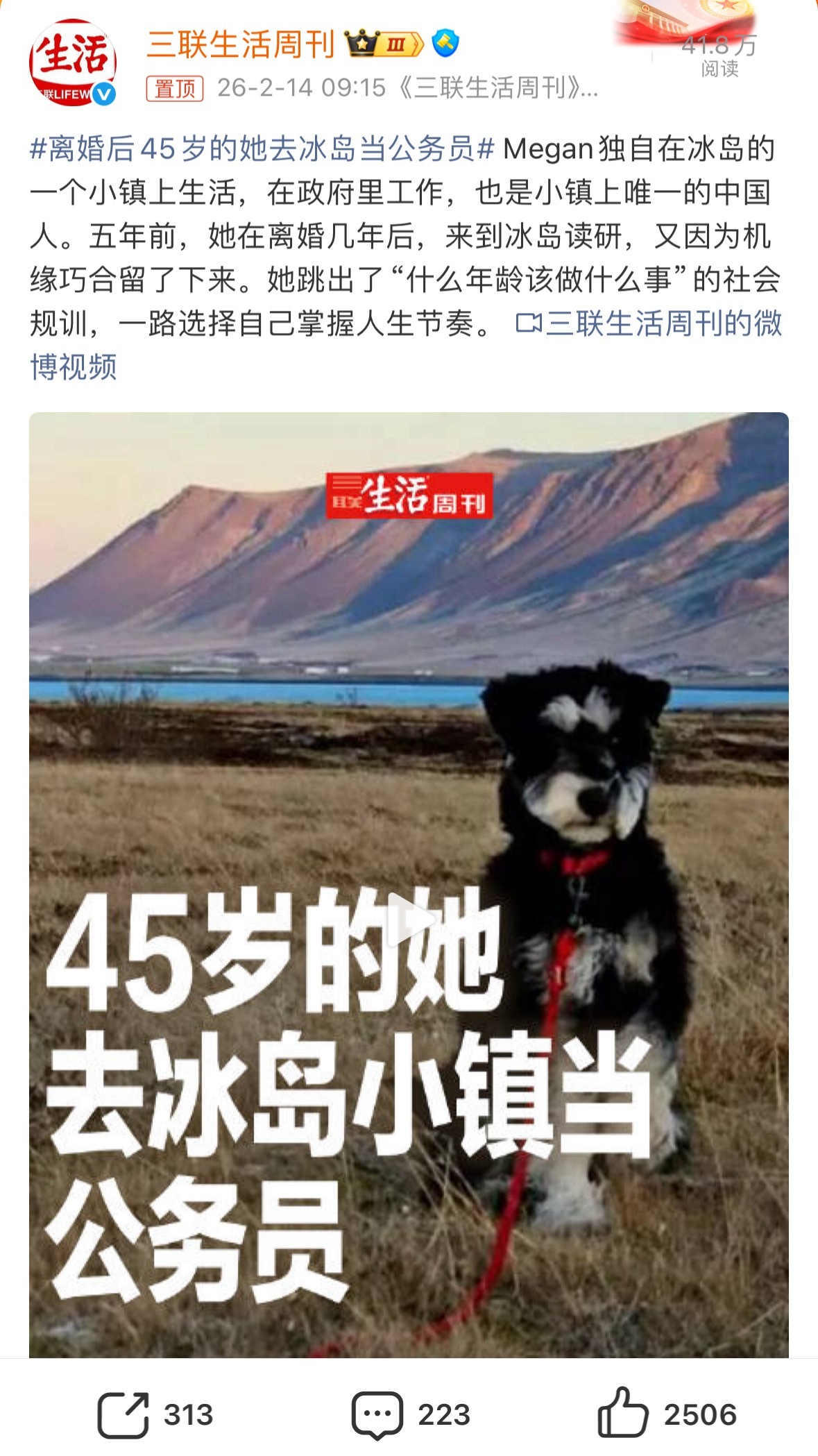 离婚后45岁的她去冰岛当公务员三联又梅开二度了,一月份刚搞了个热搜,现在又来一个