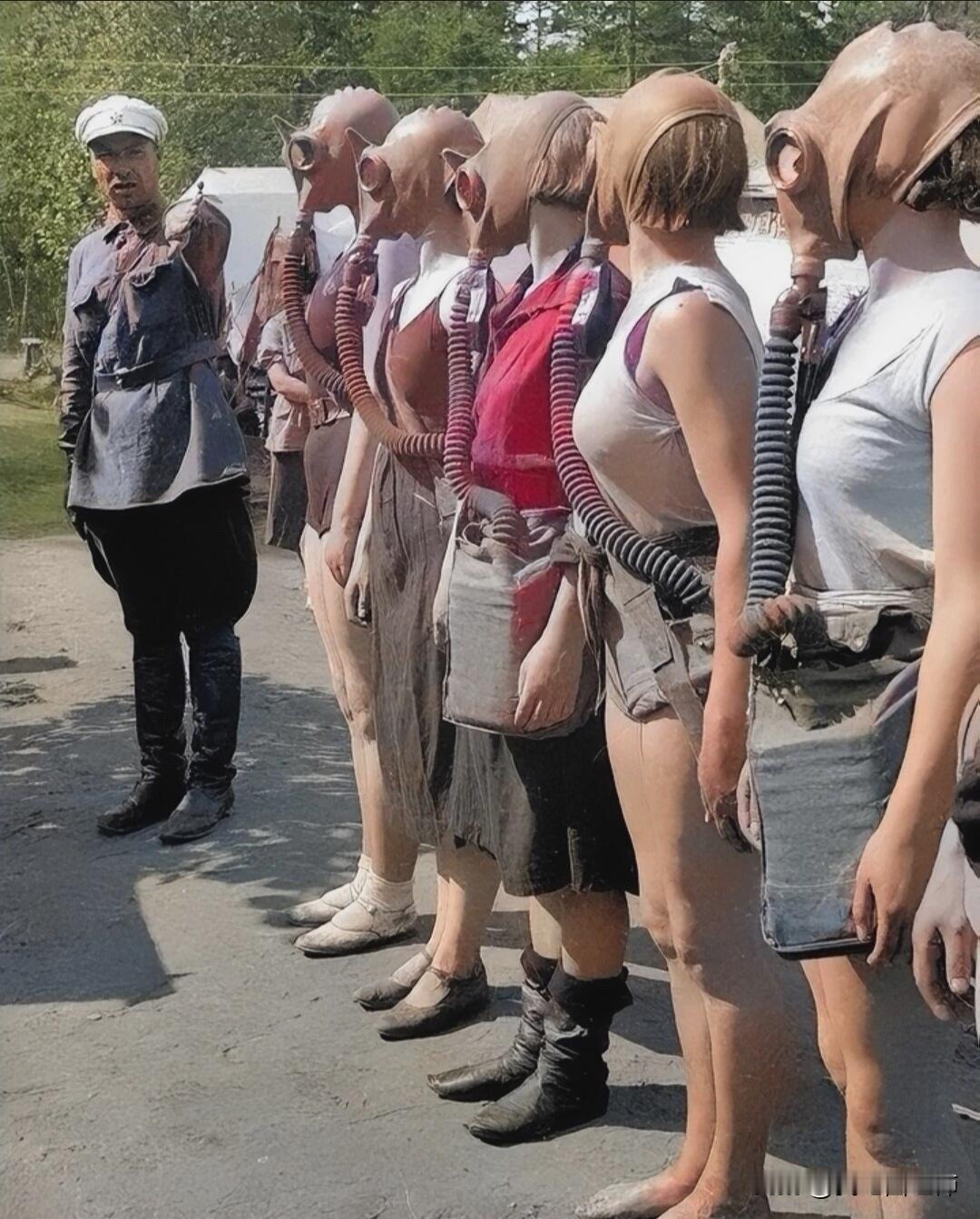 1930年,苏联正在组织女民兵,进行军事训练。此时,她们脸上戴着防毒面具,在一名教官的指挥下,整齐的站成一排。虽然,身上穿的衣服花花绿绿,五花八门。但是,她们抬头挺胸,有模有样站着军姿,还真像那么回事。 当时,苏联大力宣传“新苏联女性”,倡导女人拿起武器为国而战,重塑女性的社会角色。她们不但练习射击、投掷手雷、野营、越野,还会学习防毒面具等装备的使用。 这些训练,为他们培养了大量的女战士。二战时,有超过800万女性加入苏军,约占军队总人数的30%。 期间,还出现了女狙击手帕夫柳琴科等许多有名的女战士。 谁说女子不如男?看来,女人也一样可以上战场。甚至,在某些方面,他们比男人更占优势吧?