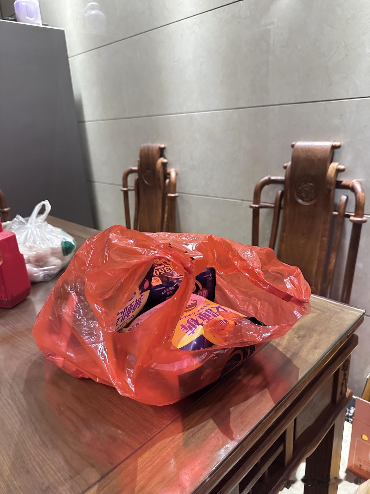 起因陪家人买年货时顺便买了卫生巾,回家收拾其他东西时随手把新买的卫生巾连同购物袋