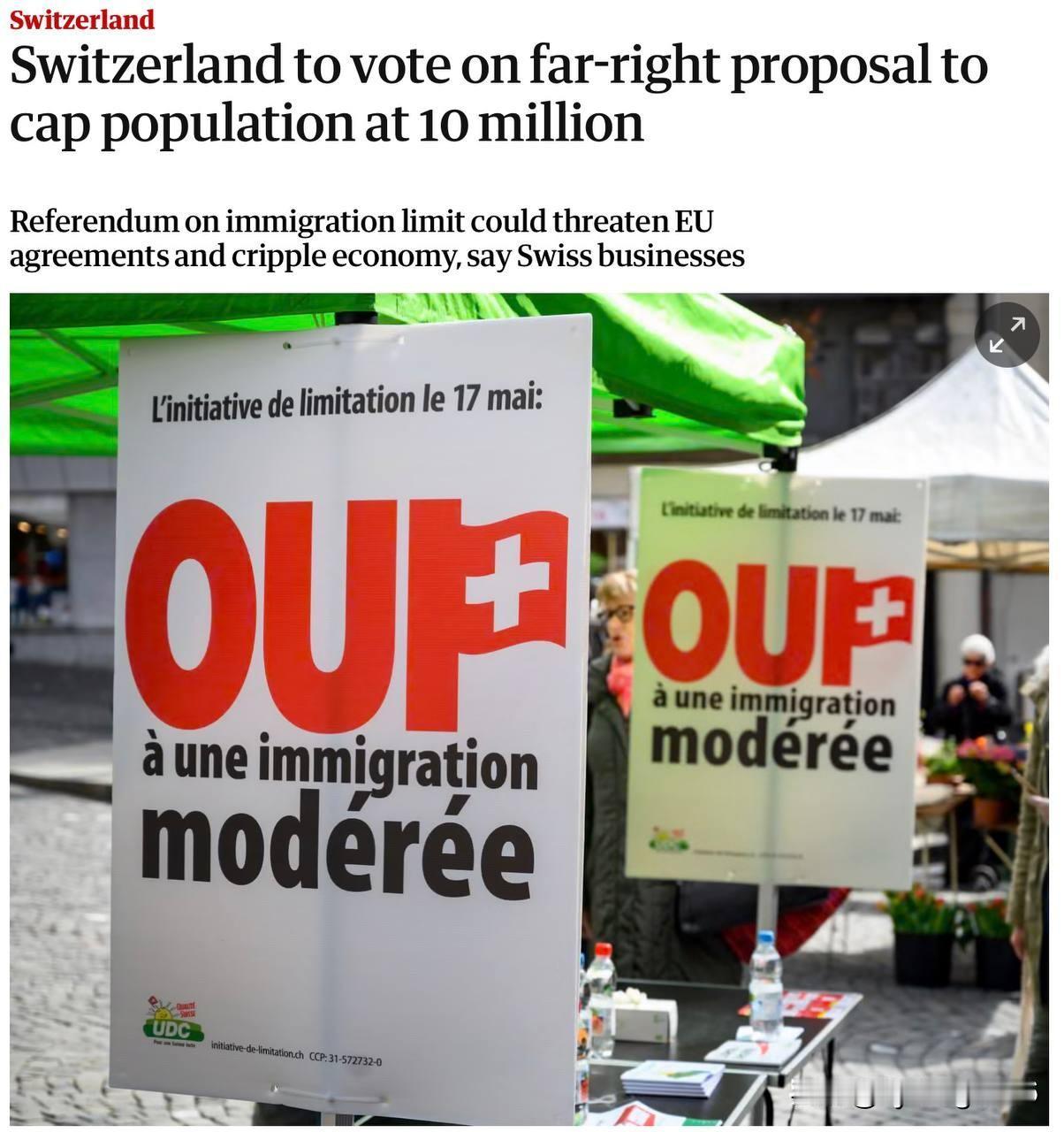 🇨🇭见识过各种各样的事情,但坦白说,从未见过这样的提议。今年六月,瑞士将就一项立法人口上限——1000万——举行全民公投。 很好奇!!!假设瑞士人开始积极生育,最终自然达到1000万的人口上限,那么公投组织者是打算枪毙“多余的人”还是把他们送进毒气室呢?