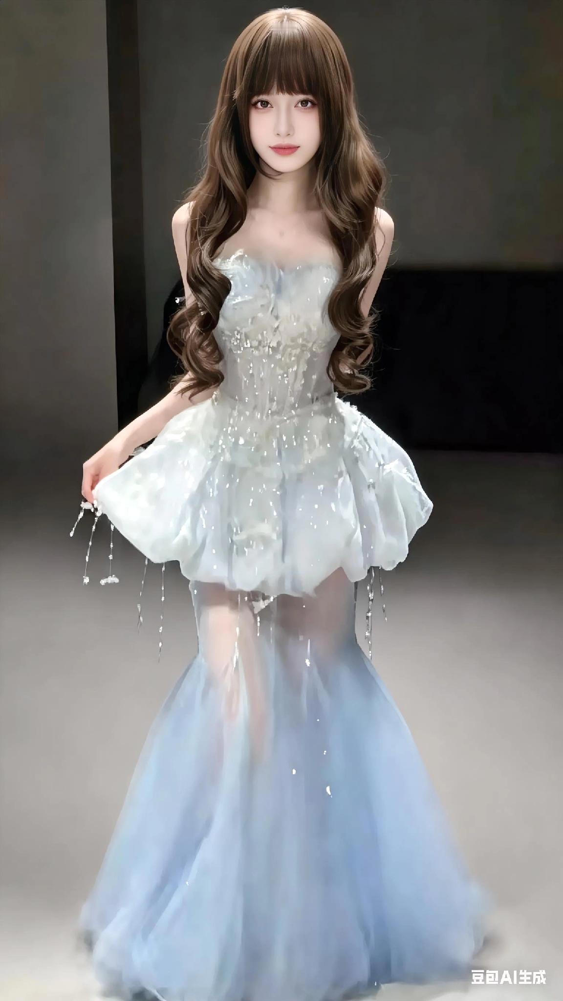 惊艳的蓝裙舞者,金光闪耀的舞台,梦幻般的氛围! 梦幻蓝裙仙女照 梦幻蓝裙 蓝
