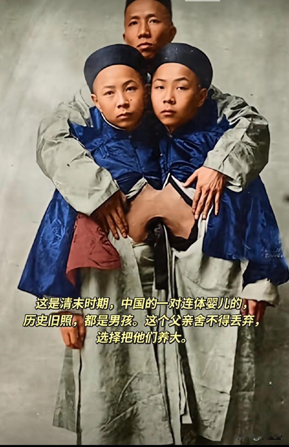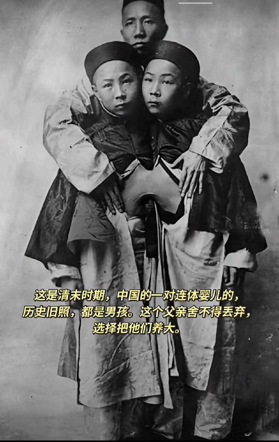 这是清末时期,中国的一对连体婴儿历史旧照,都是男孩。这个父亲舍不得丢弃,选择把他们养大。