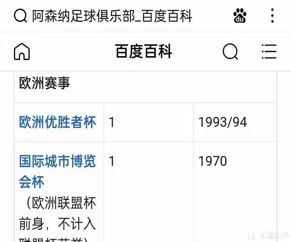 欧冠踢了210多场,冠军数是零。欧洲第一“伪豪门”终于藏不住了。别提什么19年连续参赛,那只是遮羞布。人家马竞,够惨了吧?三次决赛,三次跪着回来。阿森纳呢?就进过一次决赛,还输了。欧联杯决赛也踢了两次,照样拿不回来。手里那个欧洲冠军,还是94年一个早就取消的优胜者杯。真要扒开看,家底就这么点。踢得再好看,拿不到欧冠,是不是都等于零?