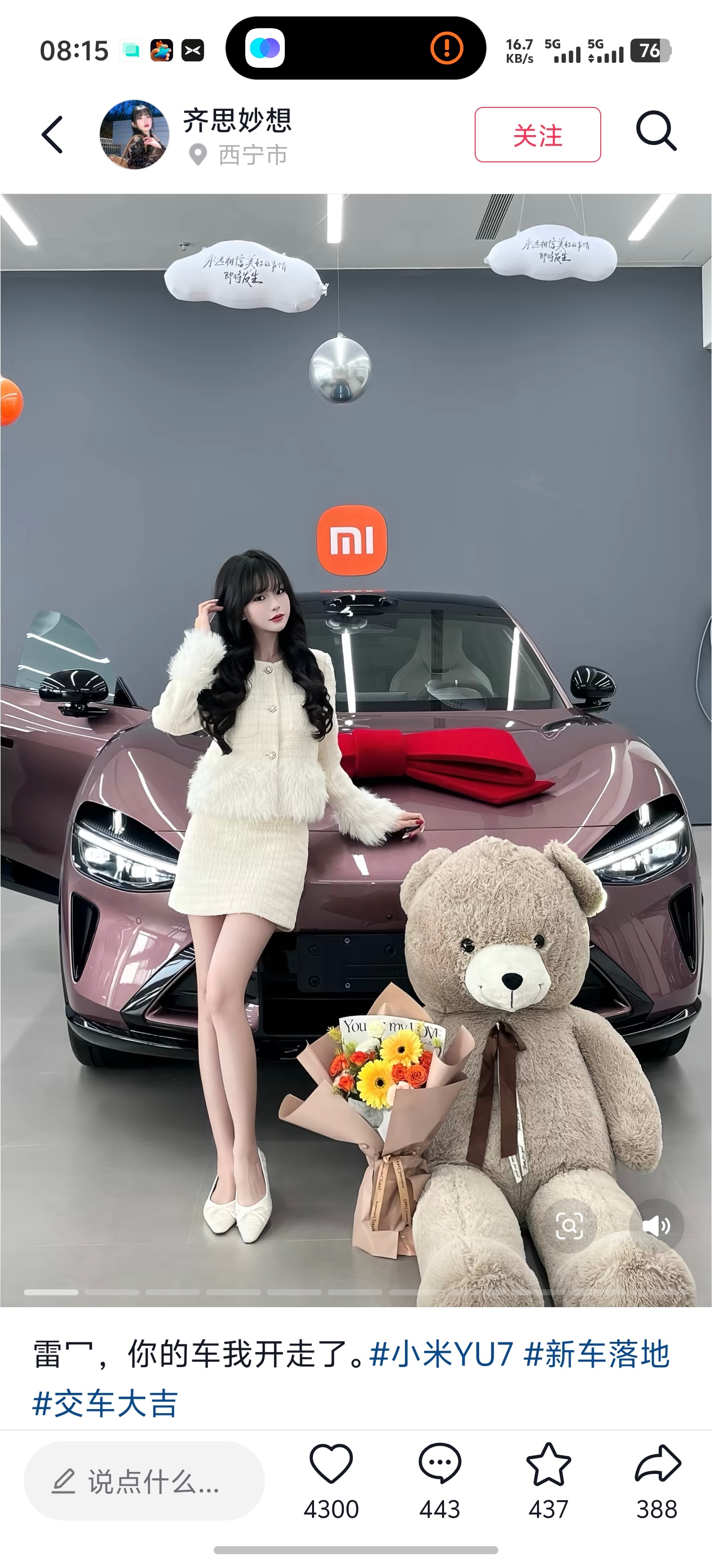 原来今天是情人节 难怪我今天早上刷抖音刷到这么多美女哈哈哈,看到好多美女帅哥的小米车主,这是小米车主都美呢,还是美的人都喜欢小米汽车呢?我觉得应该是后者,爱美之心人皆有之。 他们是真的喜欢小米汽车,等210天都愿意等,整整七个月啊,还有等了40周的,接近9个月了,真的是喜欢才愿意等这么久!