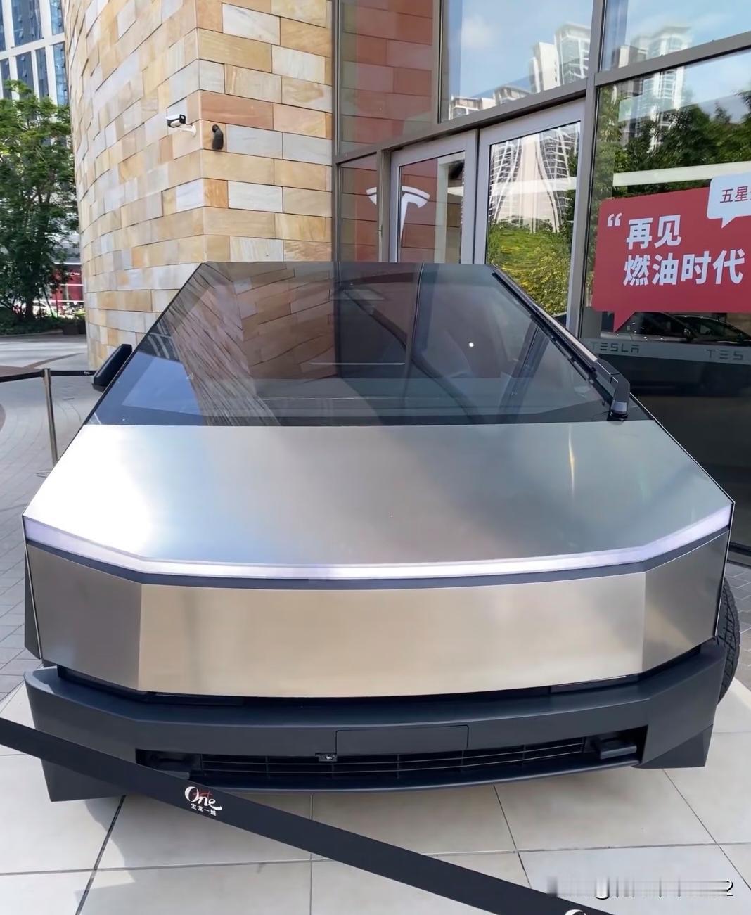 从科幻走进现实的Cybertruck 第一次在商场看到特斯拉的皮卡实车,摸了一下外观应该是钢板做的,棱角分明的设计,完全颠覆了传统汽车的设计,看起来像是科幻电影里开岀来的装甲车,太帅气了~