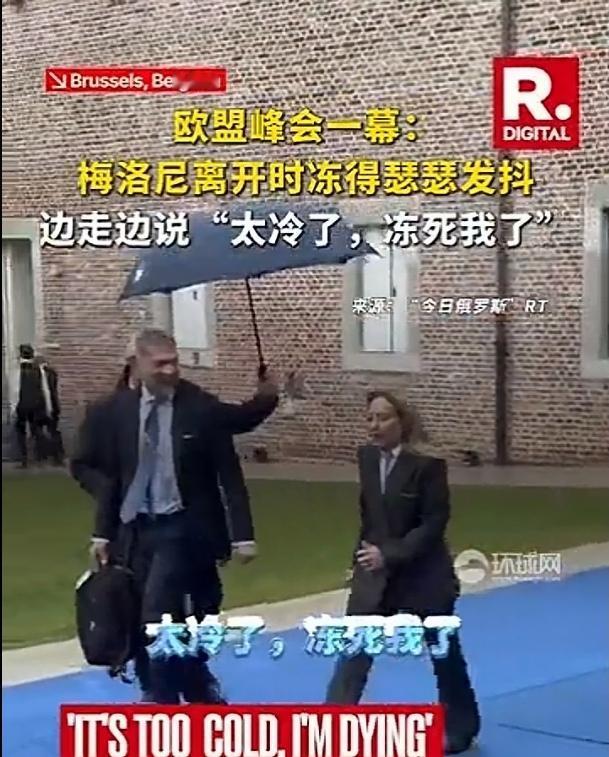 梅洛尼:(没穿秋裤)冻死我了! 意大利总理梅洛尼在离开峰会现场时被冻得瑟瑟发抖,她边走边对镜头说,“太冷了,冻死我了”。 呵呵,一看就是不仅没穿棉衣,而且也没穿秋裤[偷笑]。要我说,欧洲就是落后,没有拼多多,哪怕是有个拼夕夕也可以顺手拍一件棉衣穿上。注意,不能剪掉牌,等上了车,暖和了,再退货嘛。这招,咱们这小孩们都知道[偷笑]