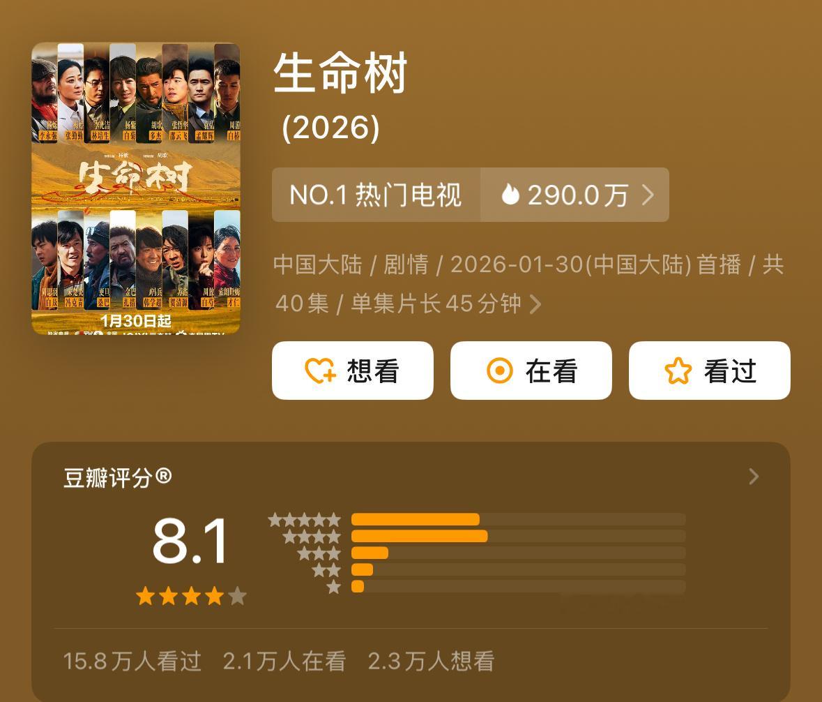 杨紫生命树豆瓣开分了,17.7w人打出8.1分。这个分数怎么样?