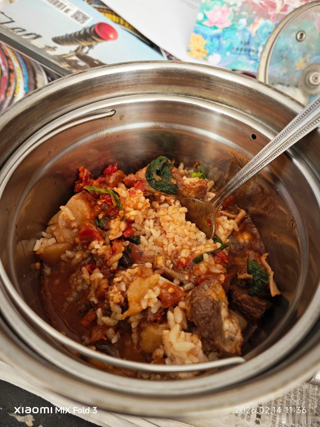 好几天没吃米了,把储存的加入辣椒,自热包加热来吃,还很好吃,味道不比四十块钱的西贝外卖牛肉饭差。