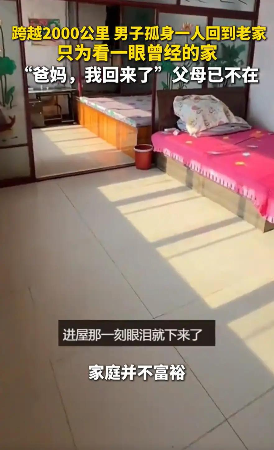 吉林,一男子过年跨越2000公里回到老家,可这一次,没有在门口迎接他的父母,只有空荡荡的房间,男子也不知道父母不在后自己回来还有什么意义,但总觉得过年应该回来看一眼。网友:我不敢回,怕难受! 据男子讲述,回到老家推开门的瞬间,冷清扑面而来。没有父母的迎接,没有熟悉的唠叨,只有空荡荡的房间,家具依旧,却落满了寂静。他缓缓走在屋里,看着父母用过的物件,每一处都藏着回忆,却再也听不到那句回来啦。 父母离世后,他常常迷茫,不知道再回来还有什么意义。可每到过年,心底总有一股力量驱使着他踏上归途,不回来看看,这个年就过得不完整。这趟远行,不为团圆,不为热闹,只为赴一场与故乡、与父母的约定。 看着空无一人的家,他红了眼眶。曾经,父母在,家就在,年味就在;如今,父母不在,故乡只剩归途。 网友:“我不敢回,怕难受,怕推开家门,再也没有等我的人。” 父母在,人生尚有来处;父母去,人生只剩归途。