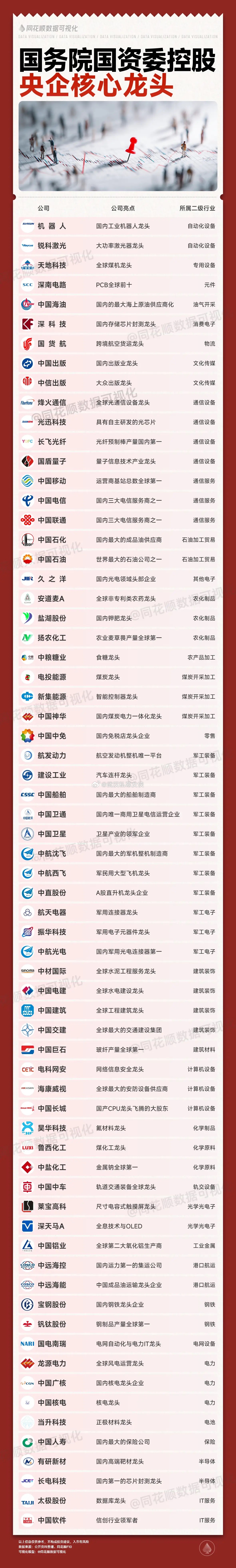 国务院国资委控股,央企核心龙头梳理同花顺数据可视化股市分析央国企行业龙头